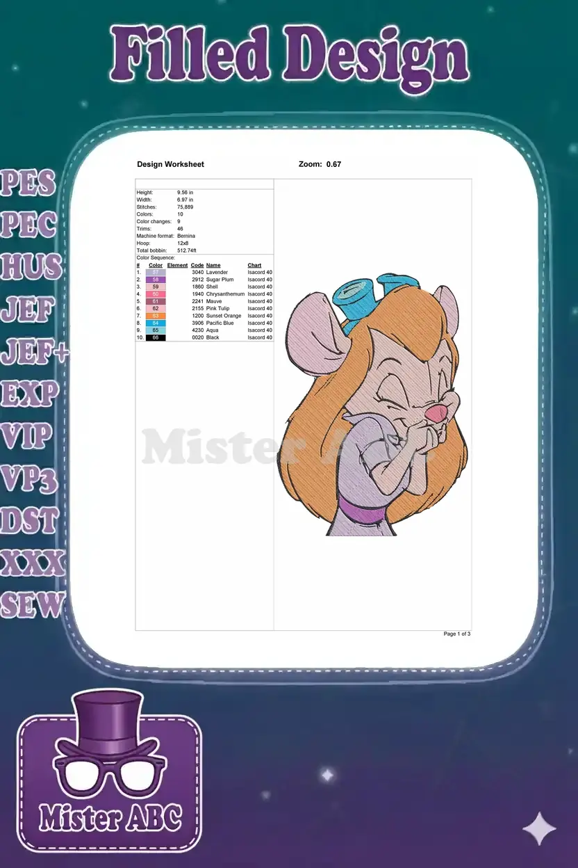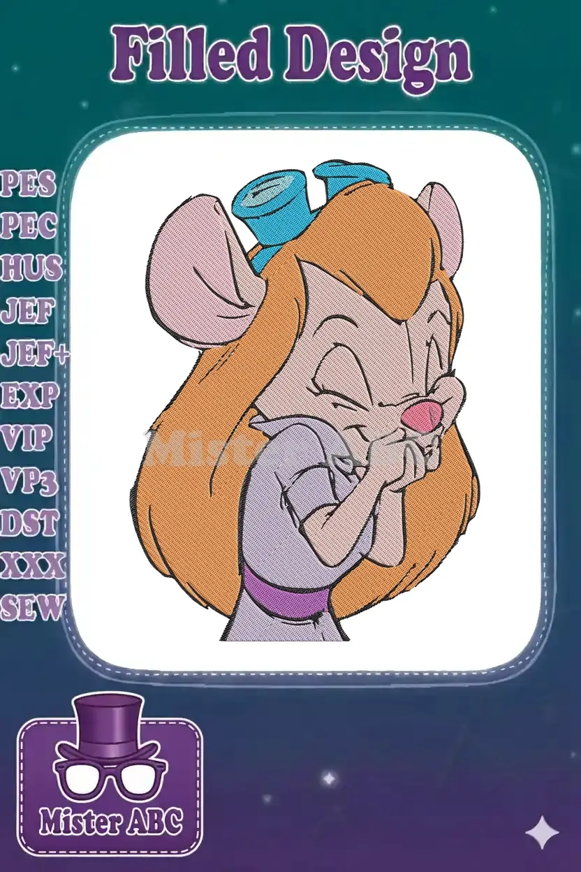 Funny Gadget Hackwrench cartoon mouse giggling face embroidery designs