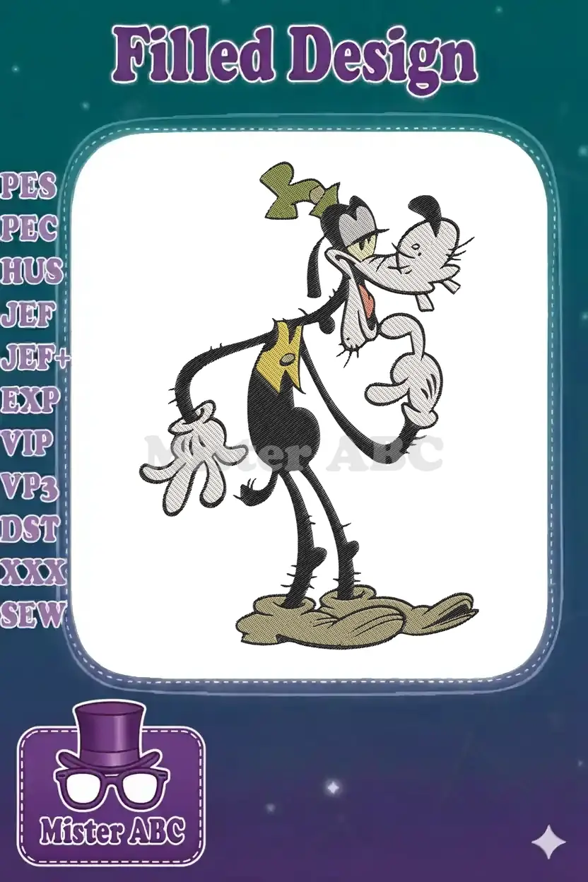 Embrace the whimsical charm of this unique Goofy embroidery design, perfect for adding character to any project. A delightful, quirky rendition for fans!