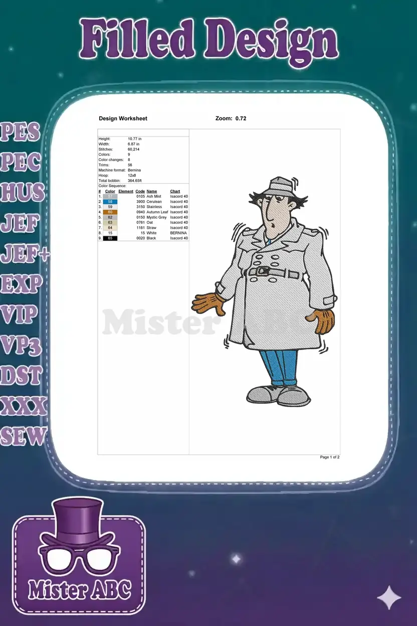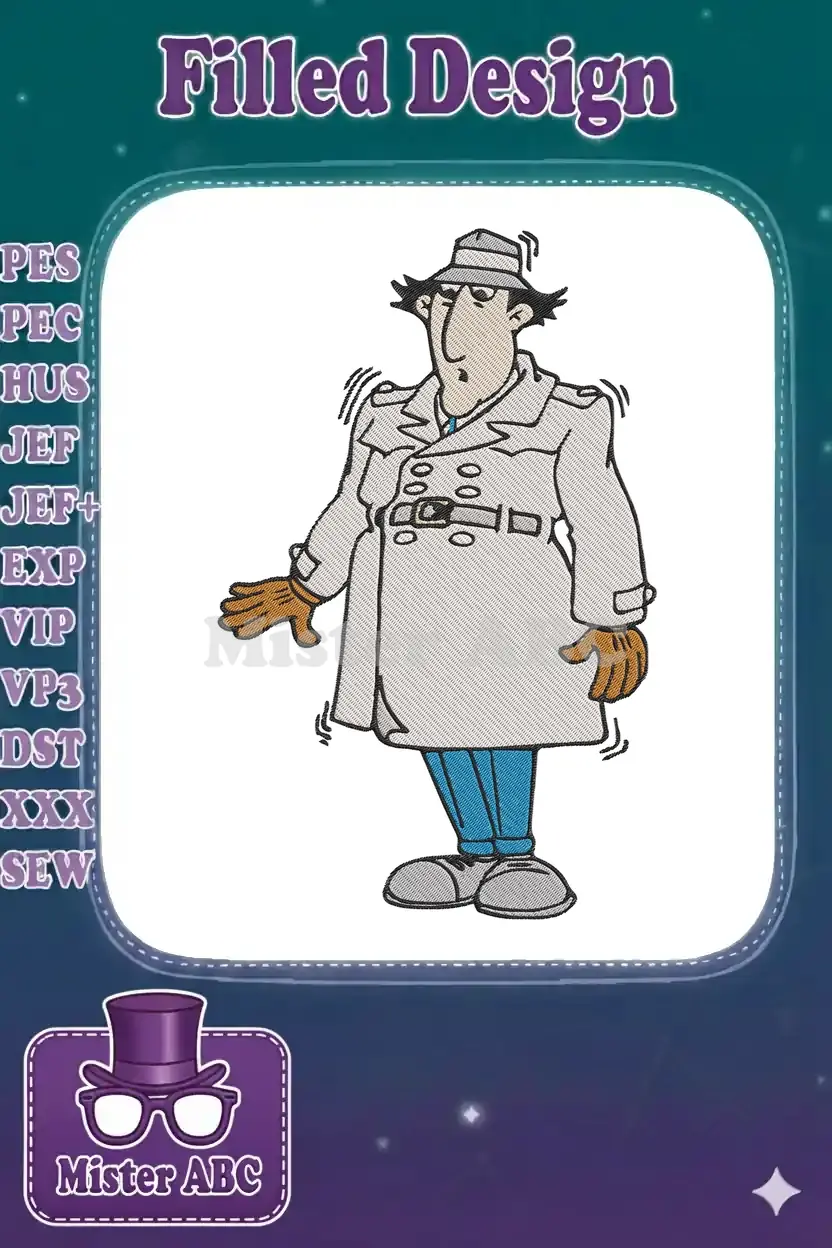 Funny Inspector Gadget animated character shaking motion embroidery designs