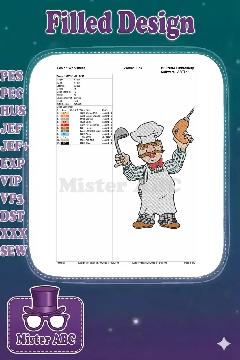 Funny Muppet Chef with Drill and Ladle Embroidery Designs