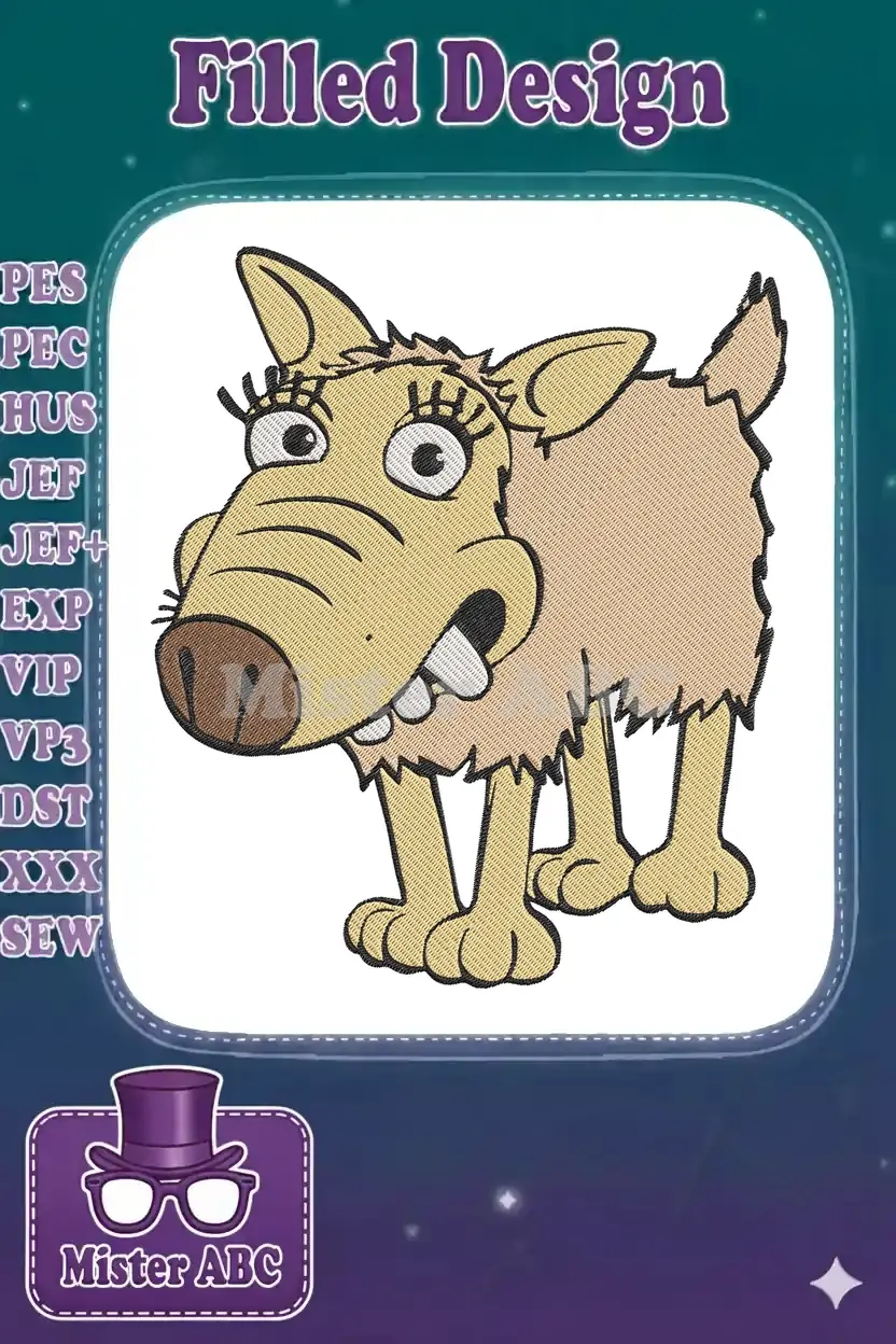 Funny shaggy cartoon dog character big eyes embroidery designs