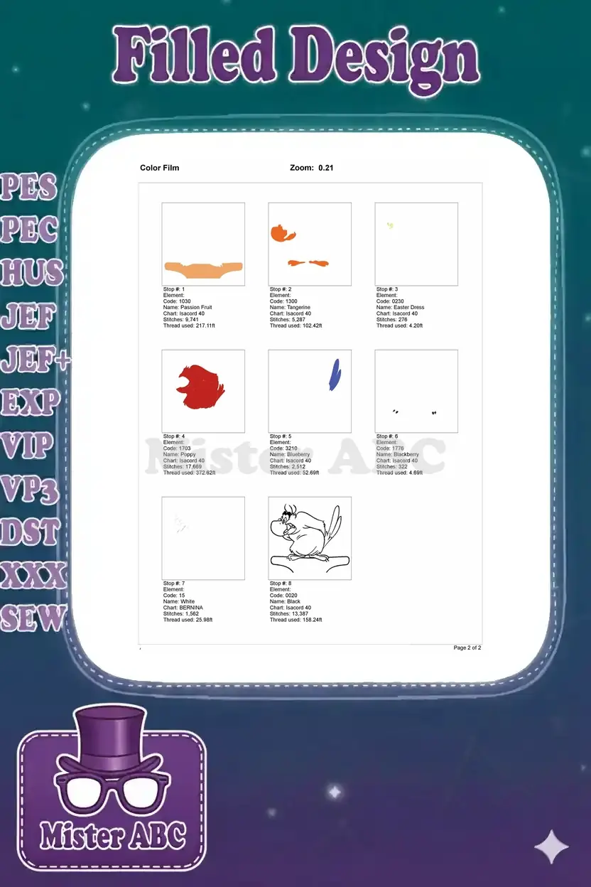 | Stitches | Colors | Thread Changes |