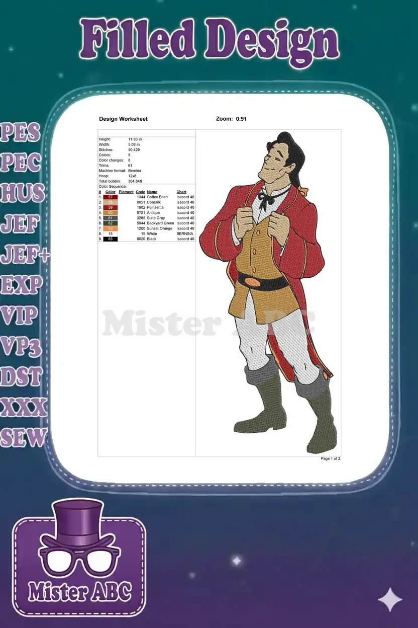 Gaston Beauty and the Beast Proud Villain Embroidery Designs