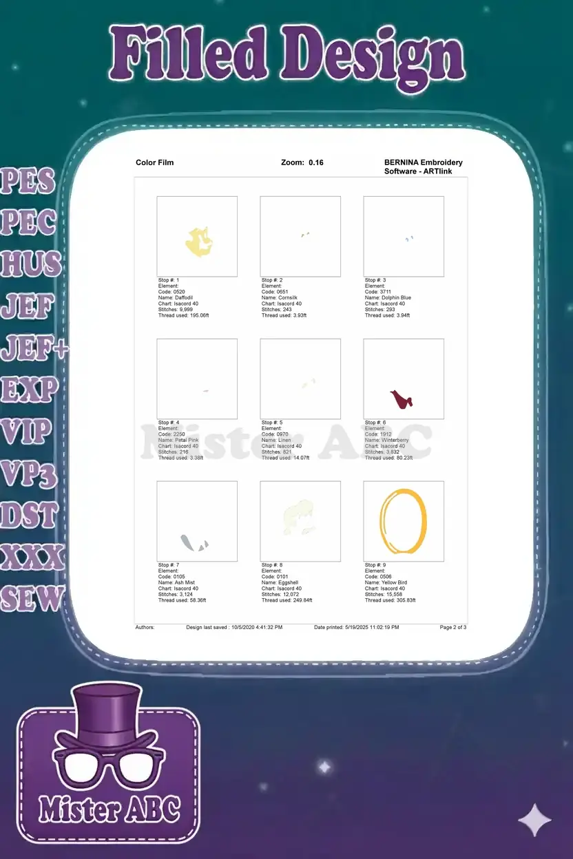 | Stitches | Colors | Thread Changes |