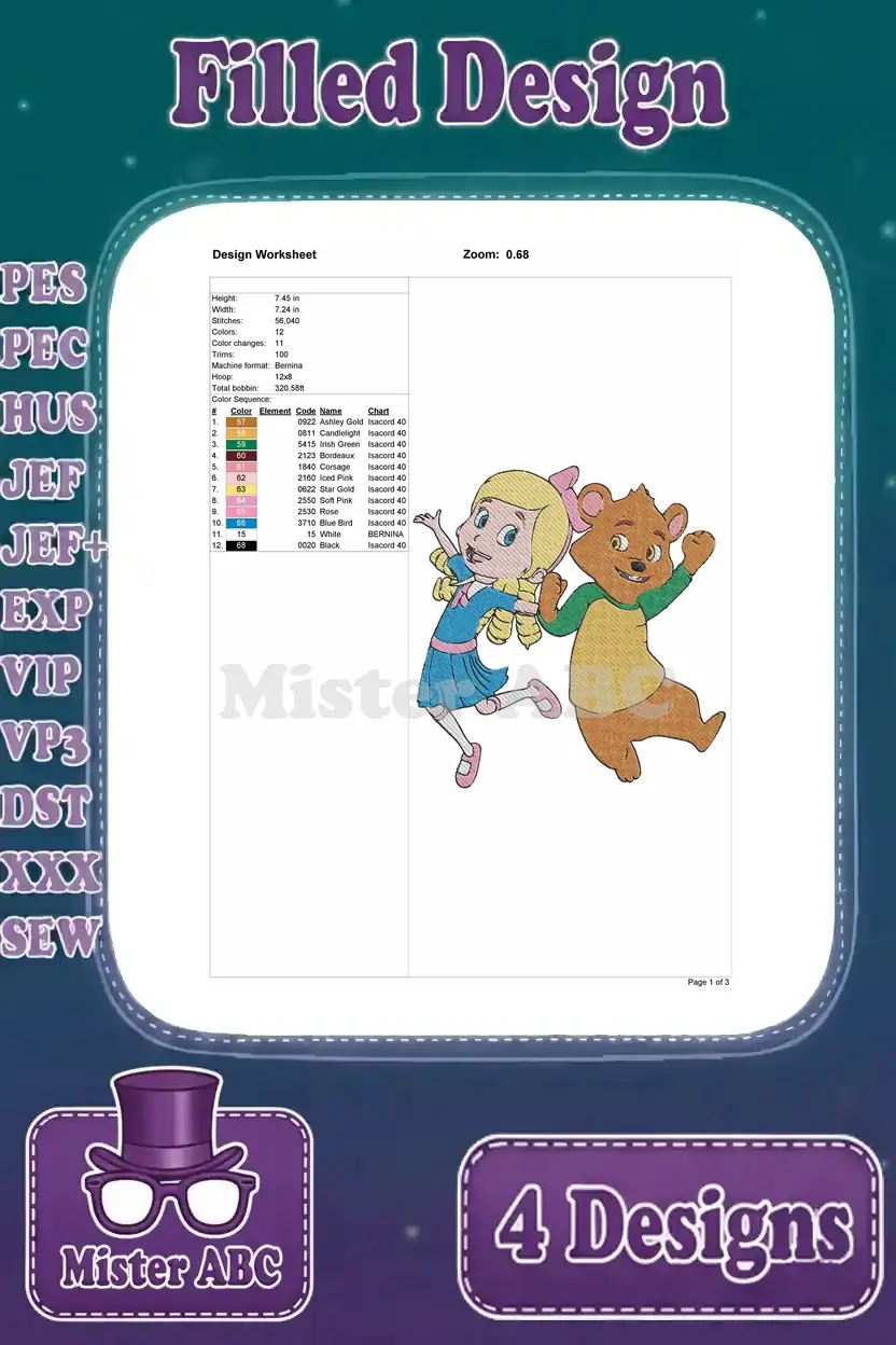 Goldie And Bear – Fairytale Friends Goldilocks And The Little Bear – Forest Adventures – Disney Junior – Filled Embroidery Design