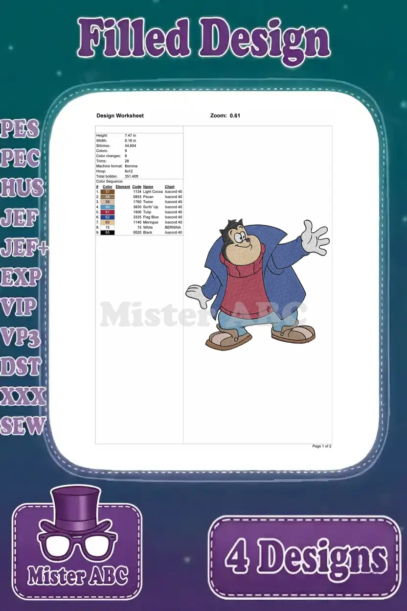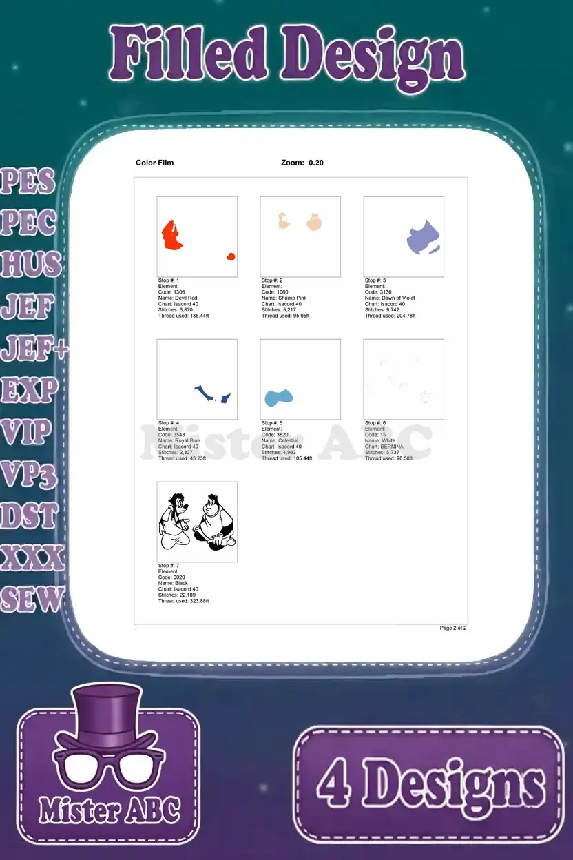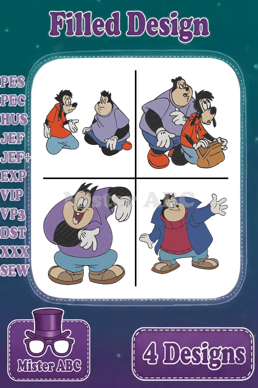 Goof Troop – Max Goof And Pete – Awkward Friends And Neighbors – Disney Afternoon Characters – Filled Embroidery Design
