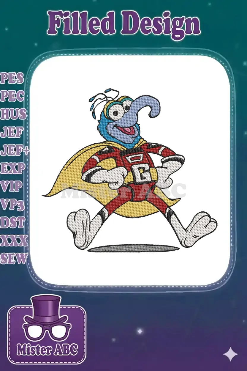 The Great Gonzo Muppet superhero running pose embroidery designs