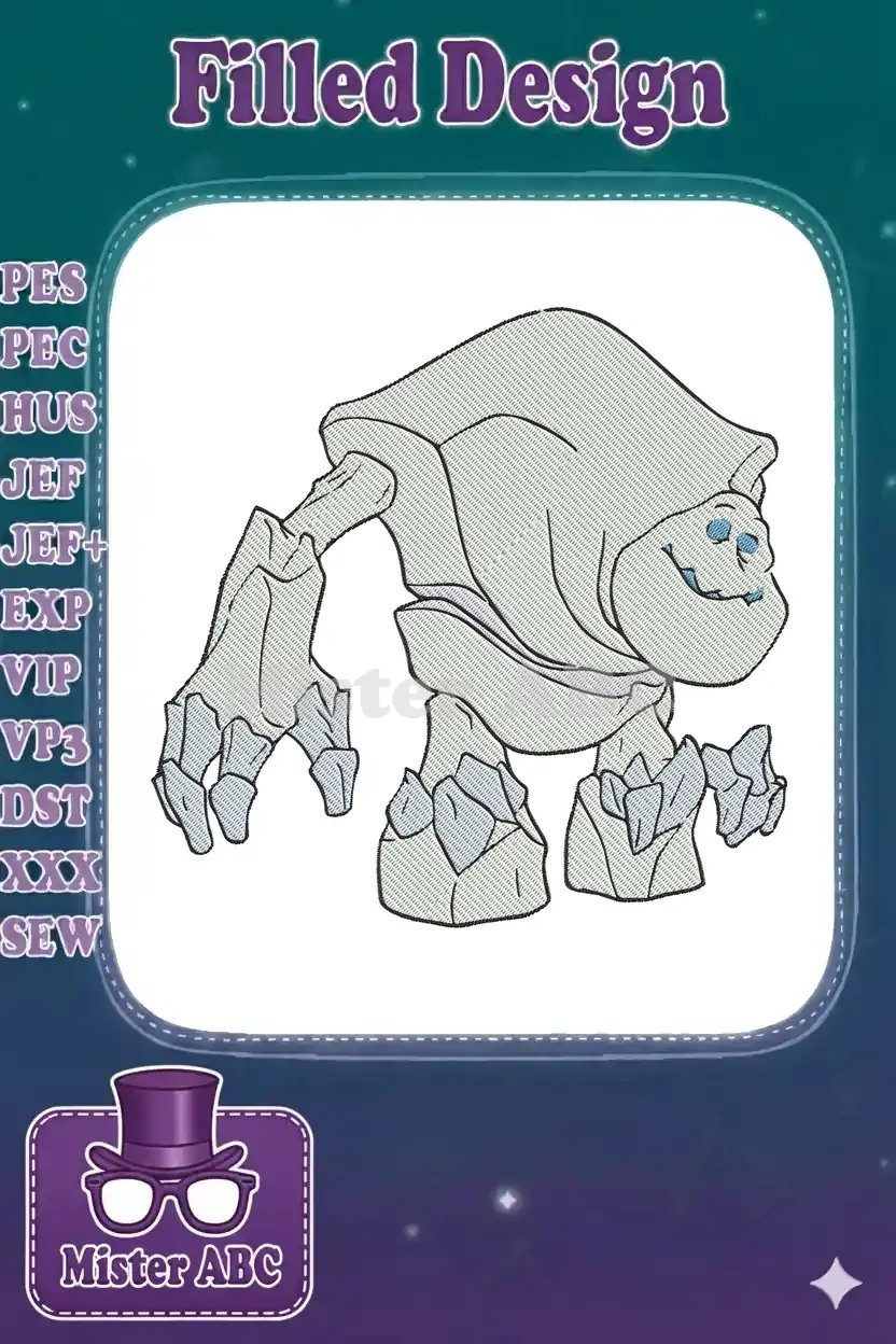 Grey rock golem creature smiling face fantasy embroidery designs