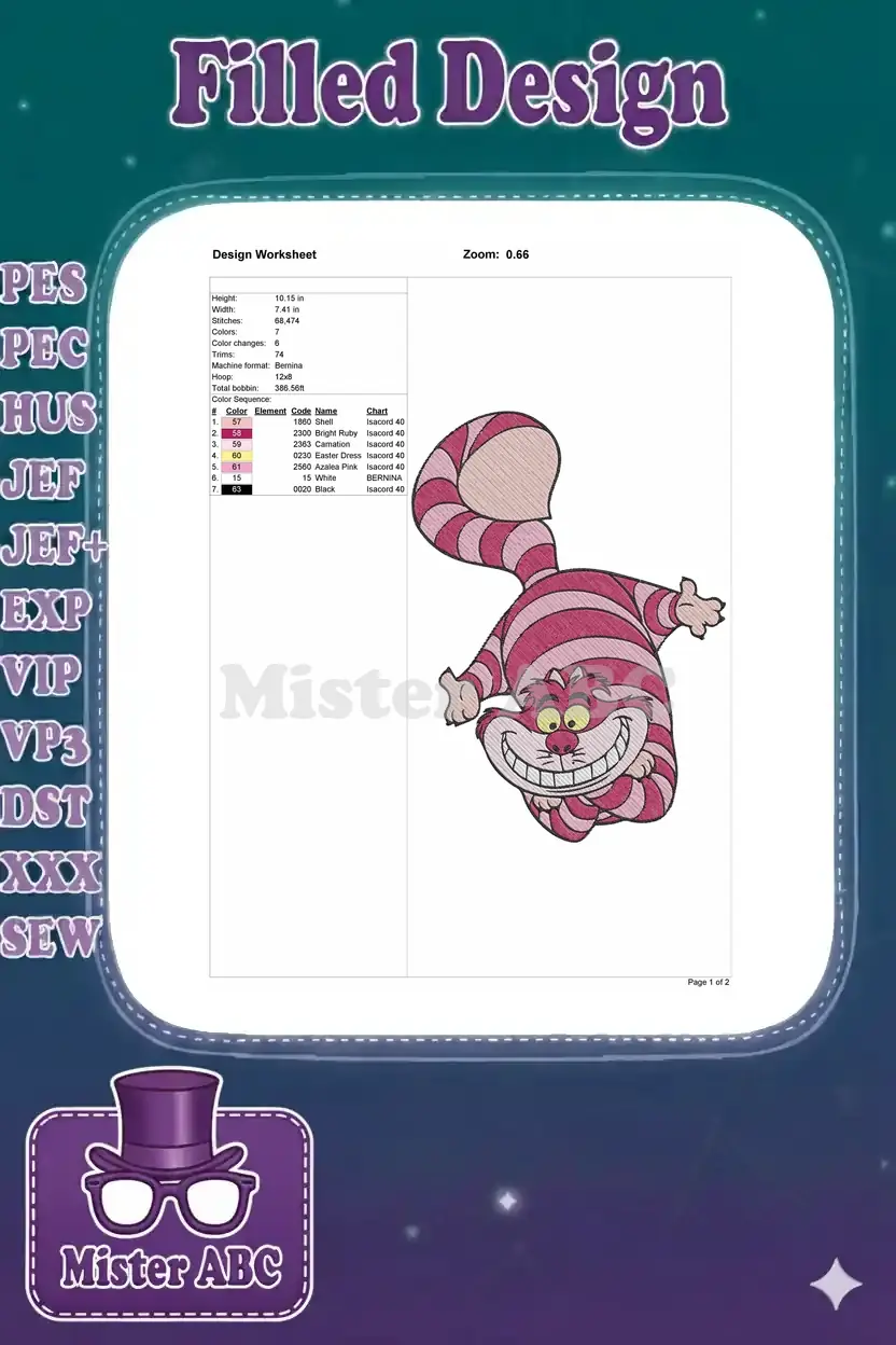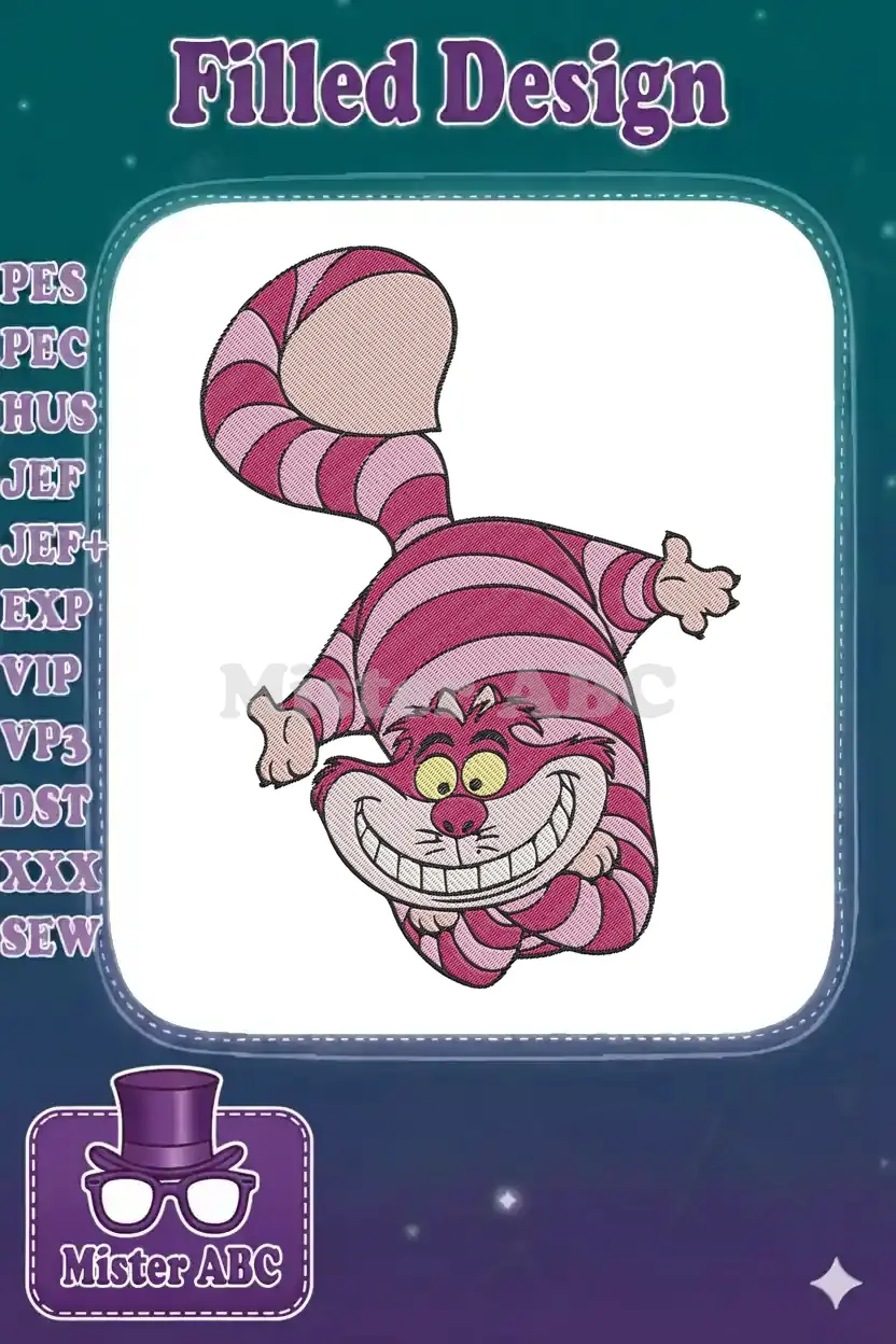 Grinning Cheshire Cat Pink Striped Alice Wonderland Embroidery Designs