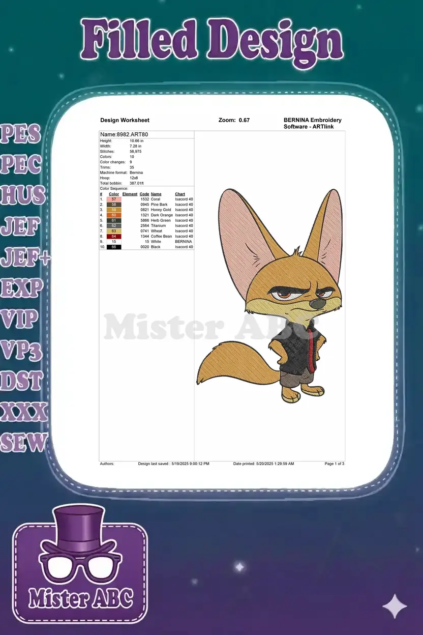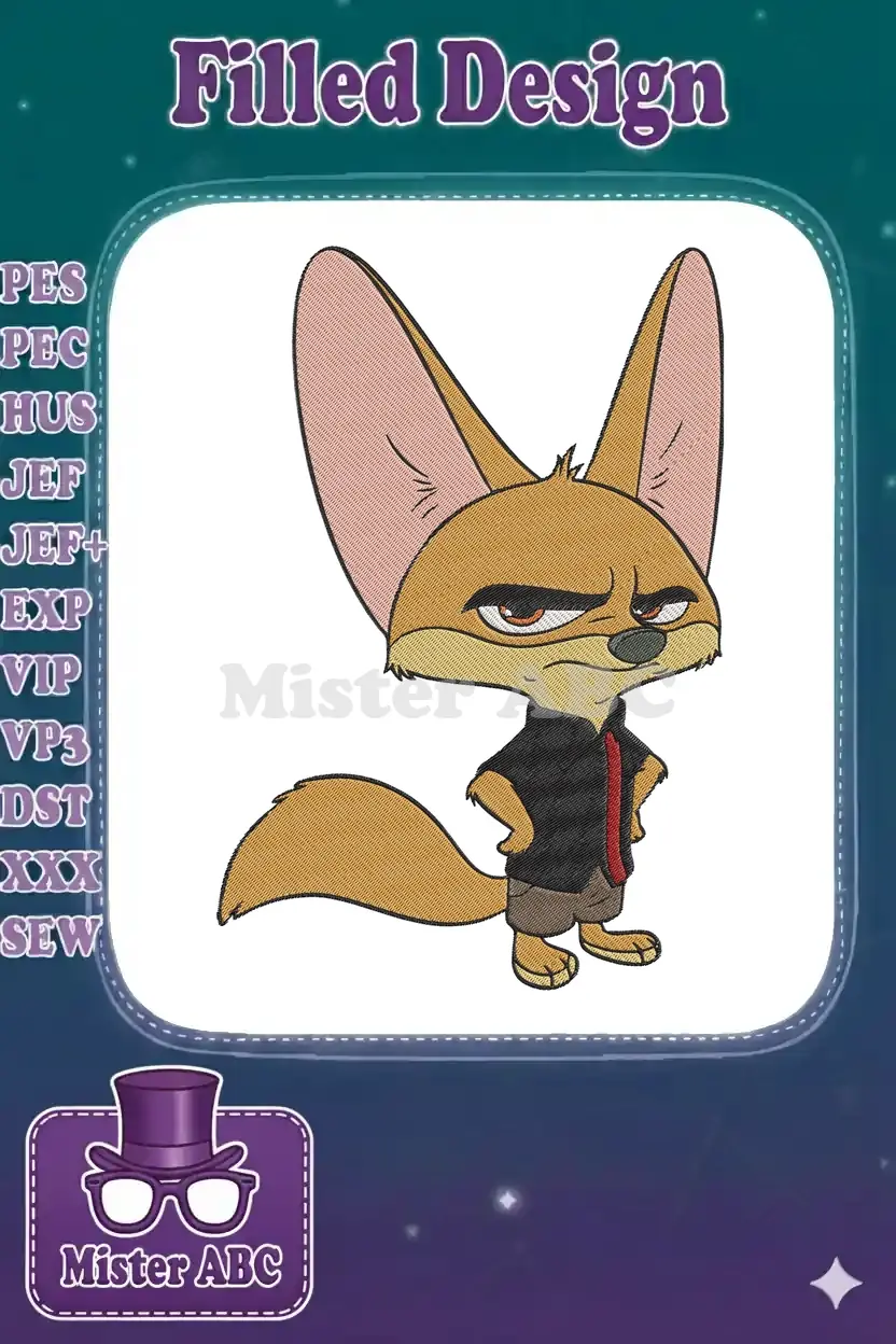 Grumpy Finnick Fennec Fox Zootopia Character Embroidery Designs