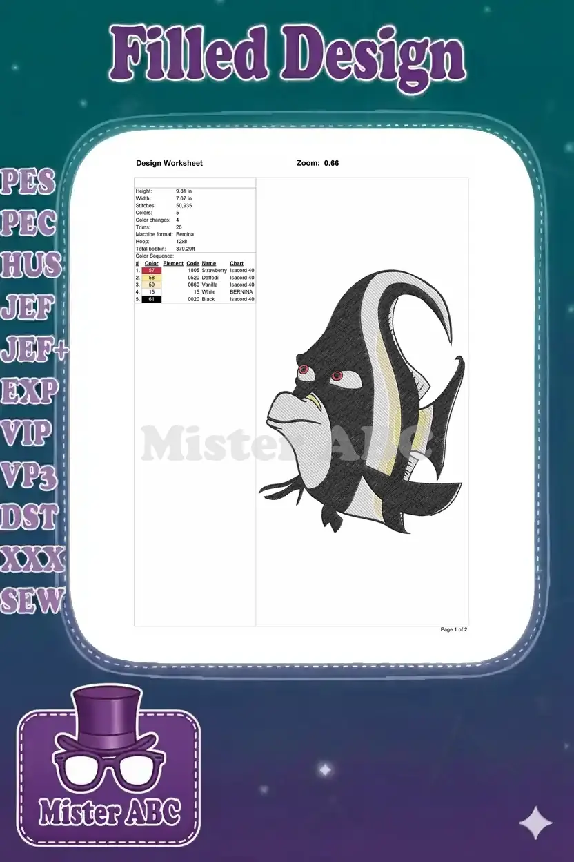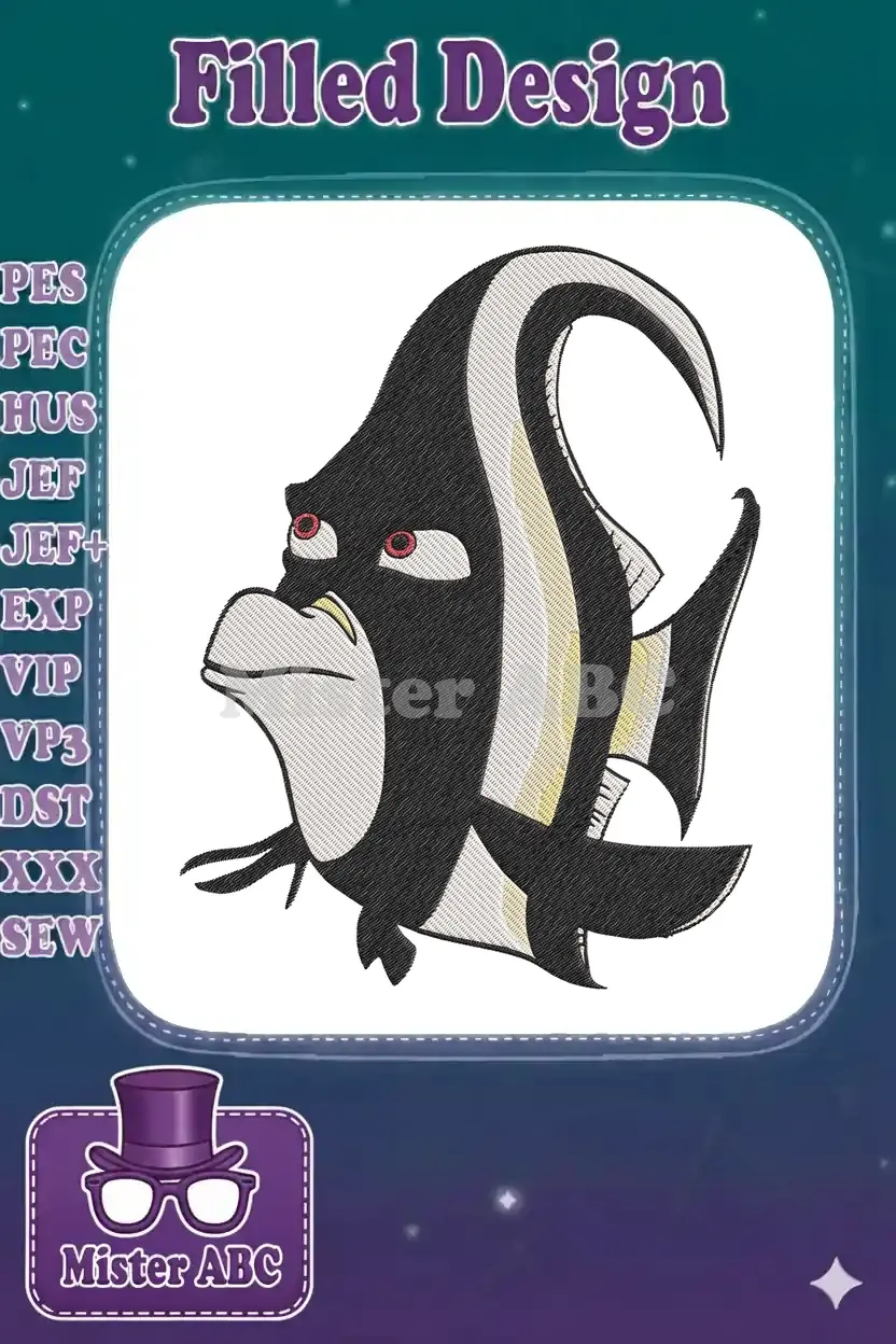 Dive into adventure with this detailed Gill embroidery design, perfect for fans of aquatic animation.