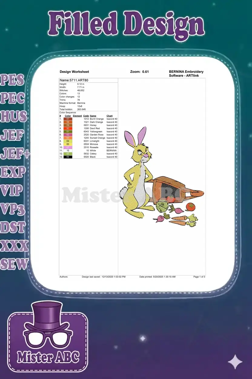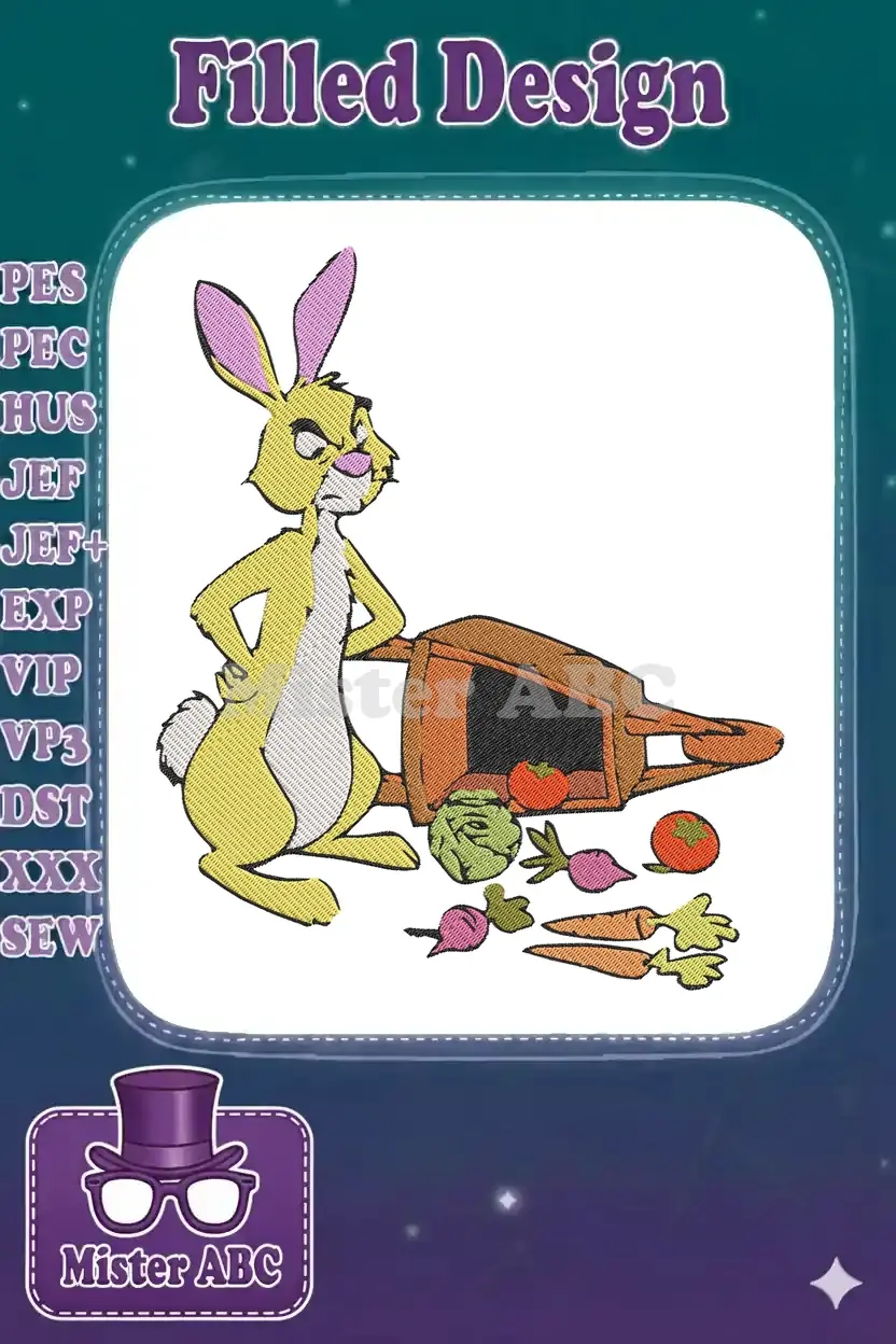 Grumpy Rabbit with Spilled Garden Vegetables Embroidery Designs