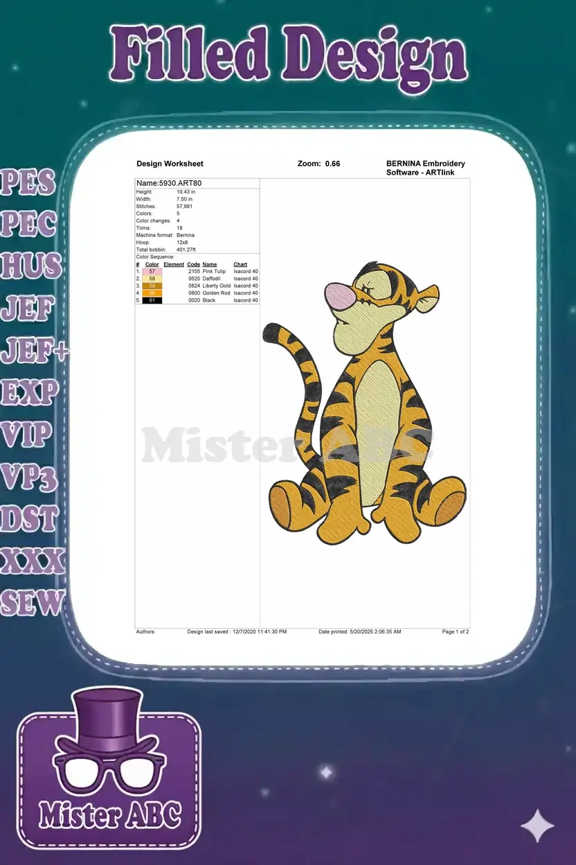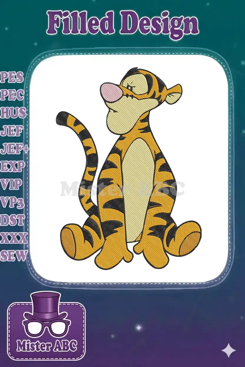 Grumpy Tigger sitting Winnie Pooh character embroidery designs