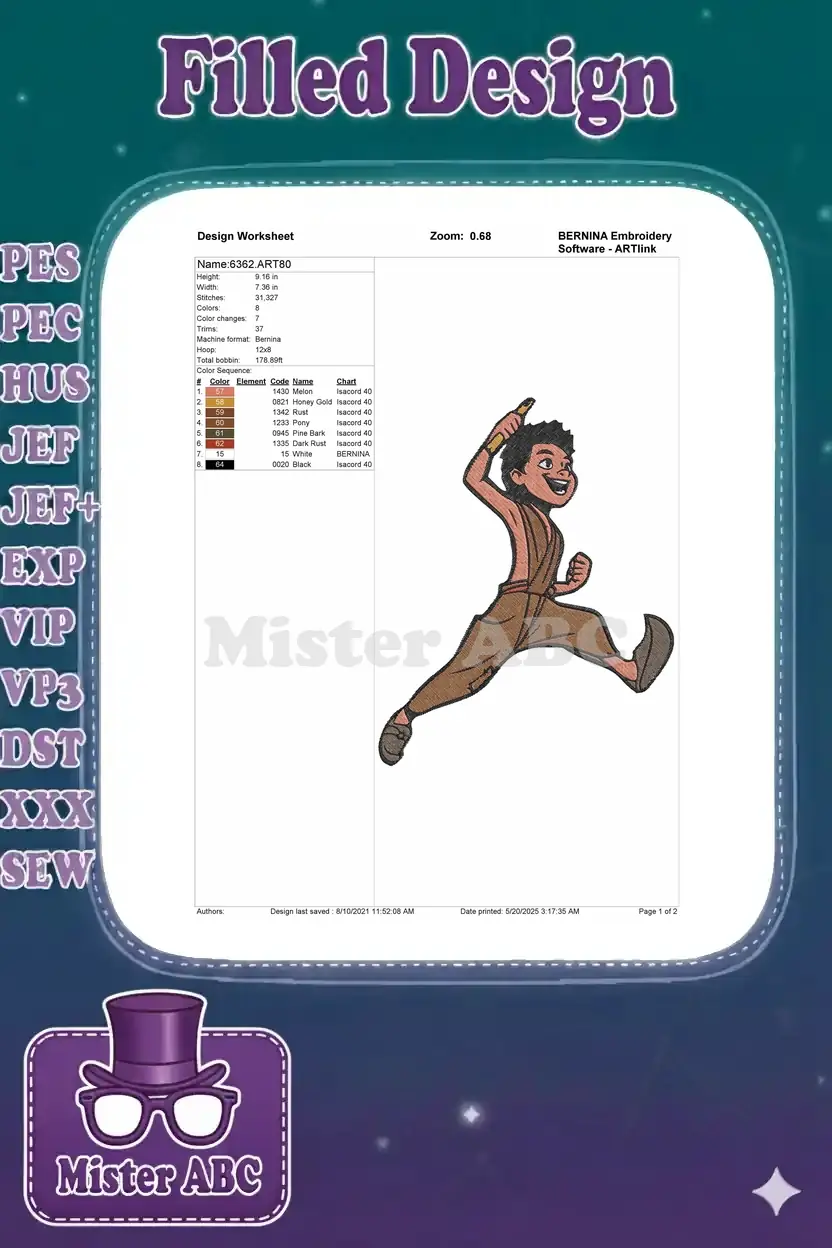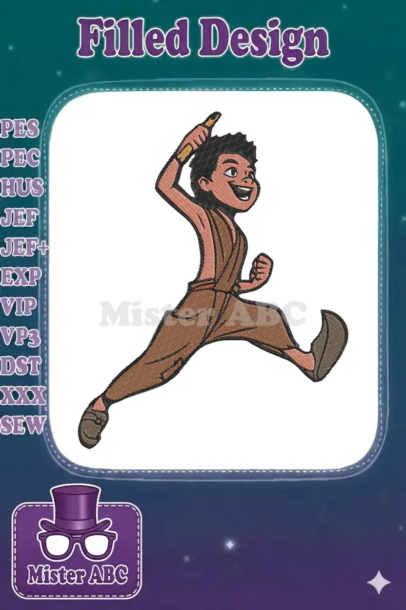 Happy Adventurous Boy Jumping with Golden Torch Embroidery Designs