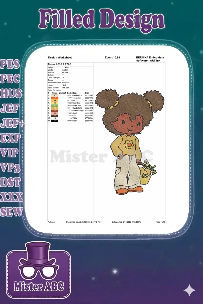 Happy African American Girl with Fruit Basket Embroidery Designs