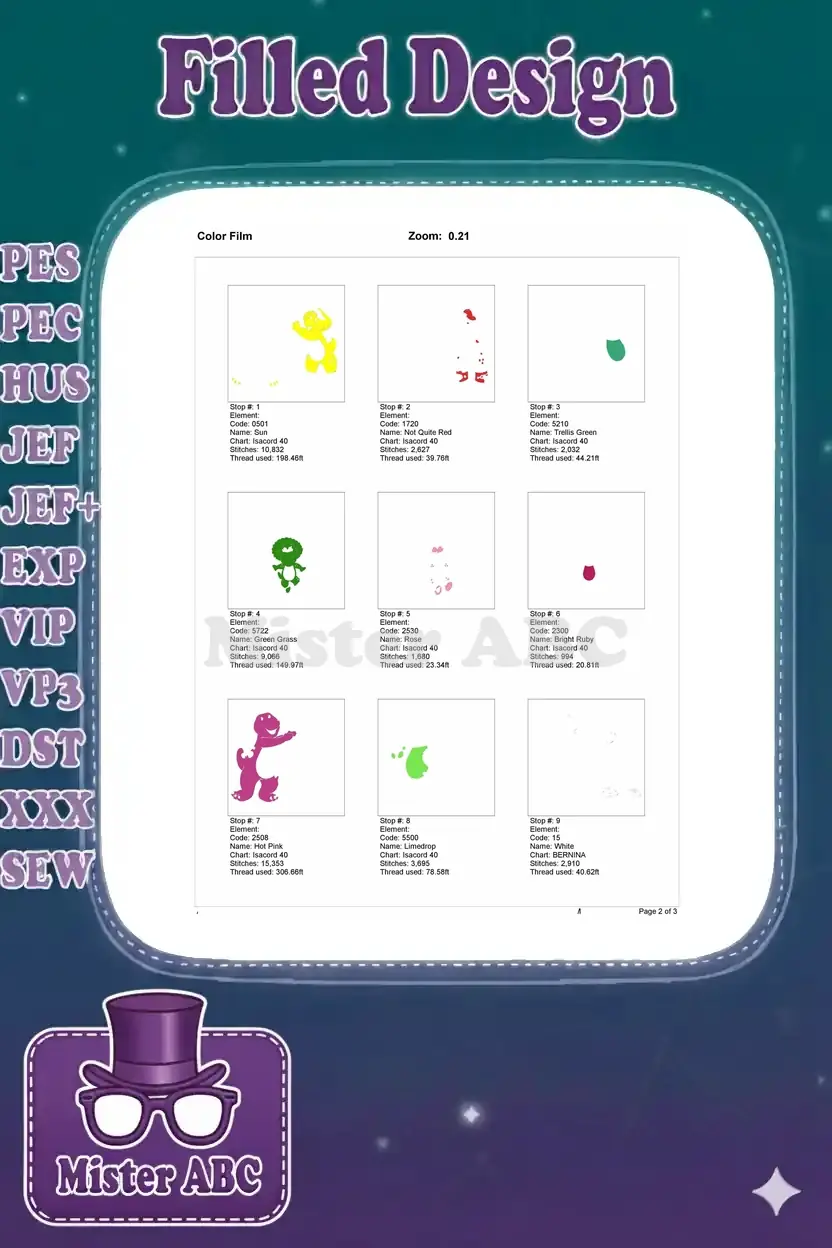 Celebrate friendship with this vibrant embroidery design featuring Barney, BJ, and Baby Bop. A cheerful addition for kids’ apparel and accessories.