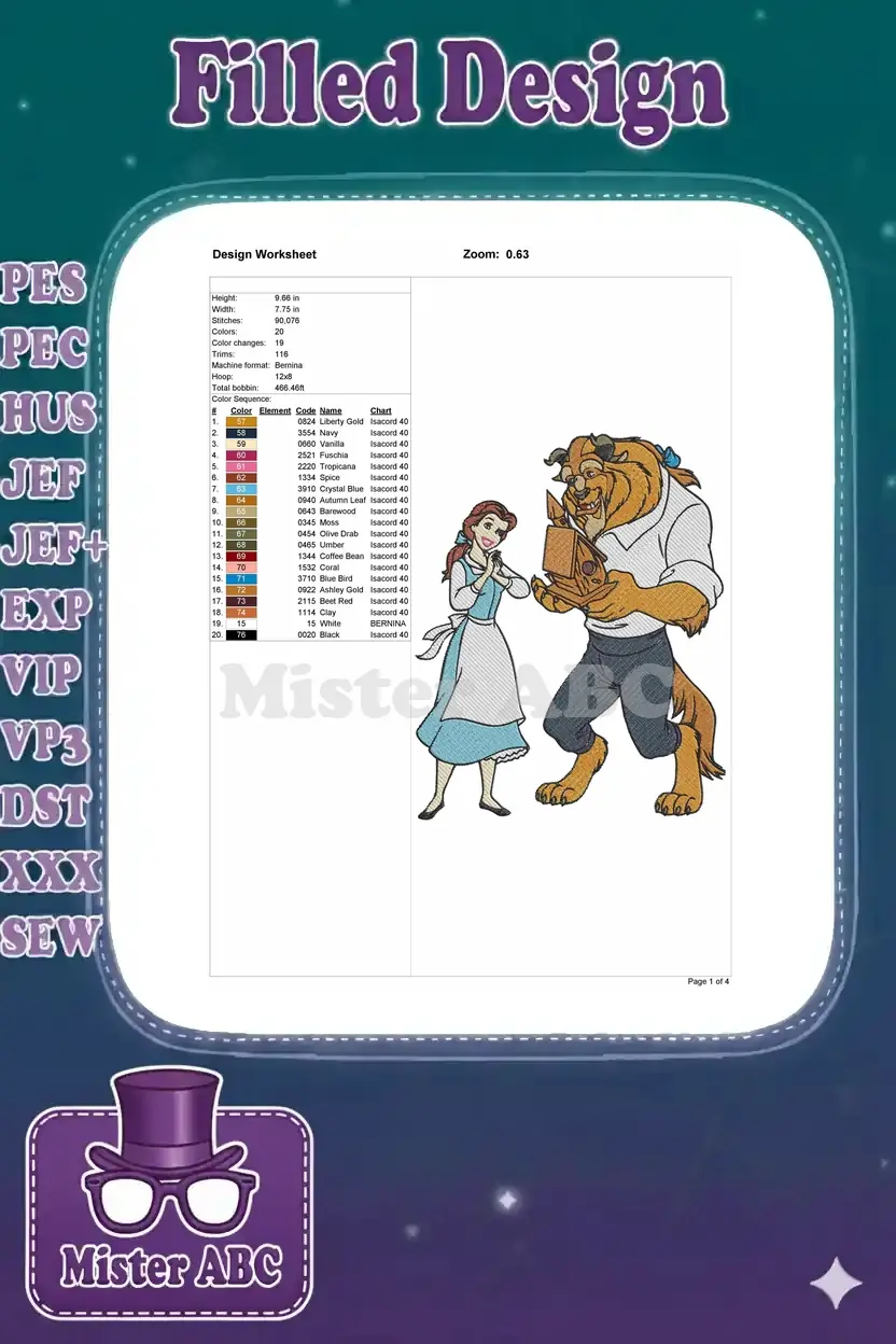 Happy Belle and Beast with birdhouse fairytale embroidery designs