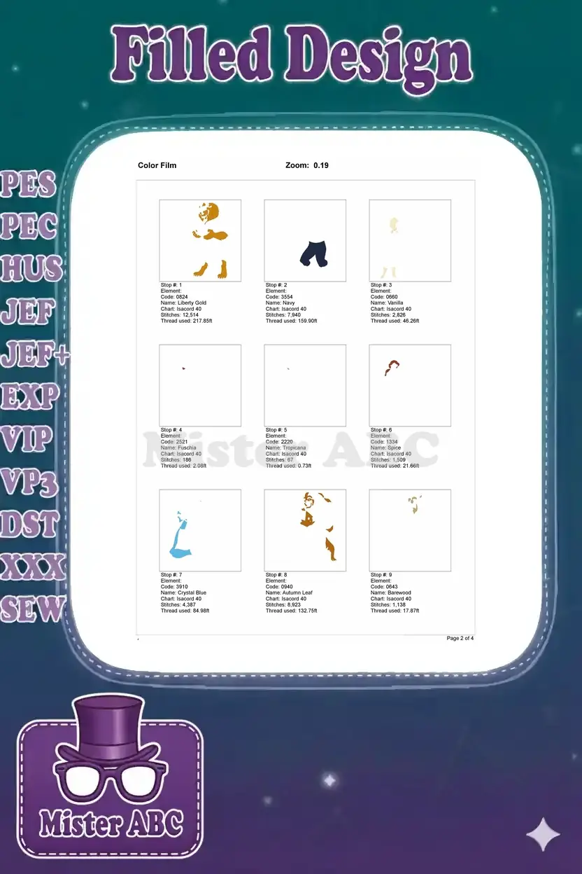 | Stitches | Colors | Thread Changes |