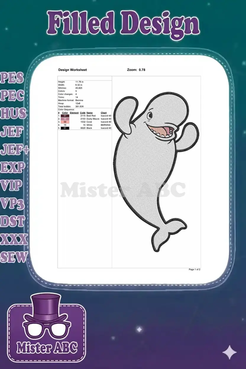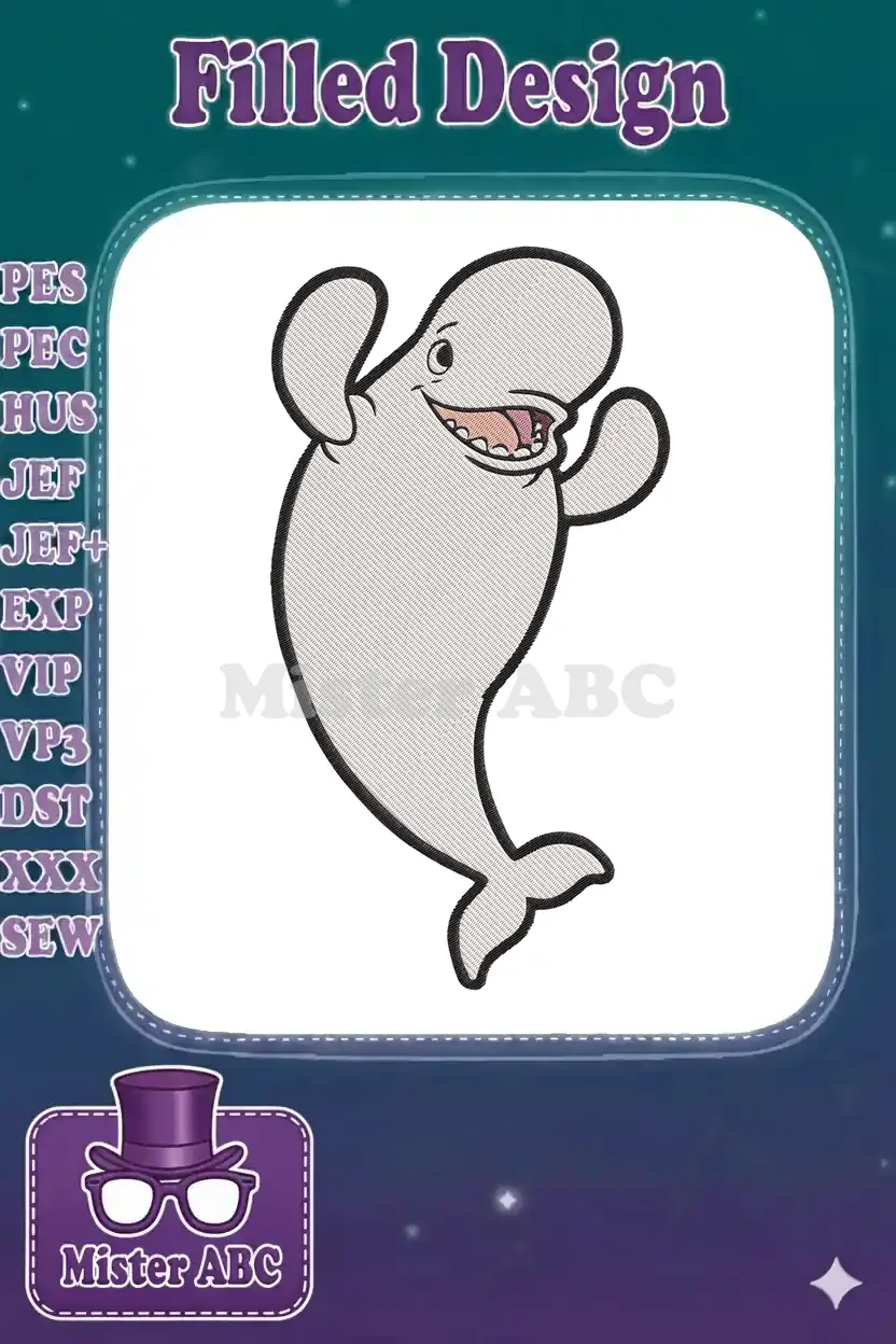 Happy Beluga Whale Cartoon Ocean Animal Embroidery Designs