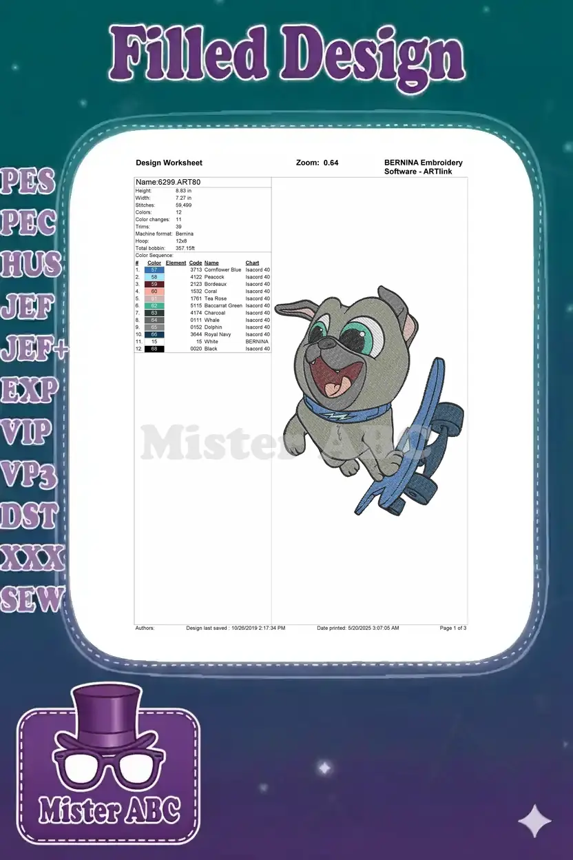 Happy Bingo Puppy Dog Pals flying jetpack embroidery designs