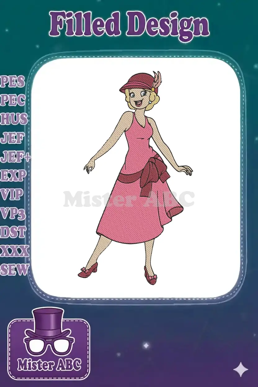 Happy Blonde Flapper Girl in Pink Dress Embroidery Designs