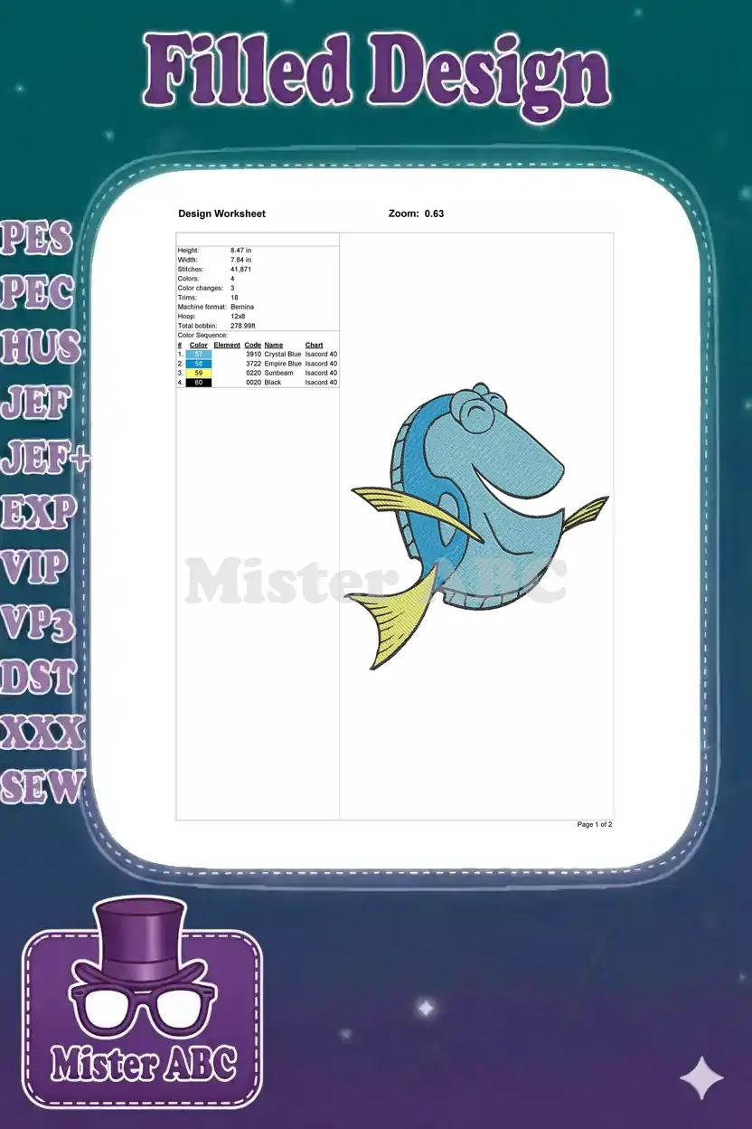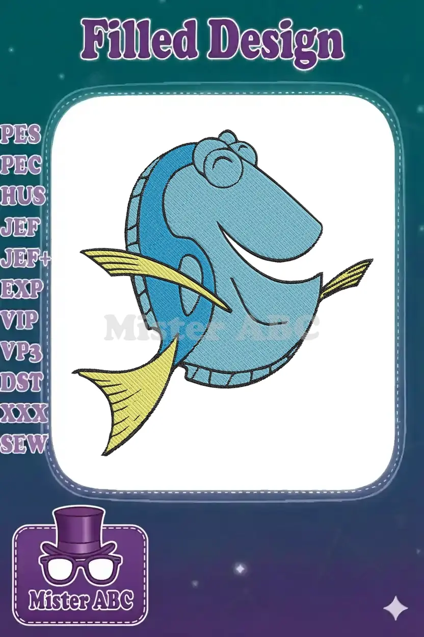 Happy Blue Tang Fish Ocean Character Embroidery Designs