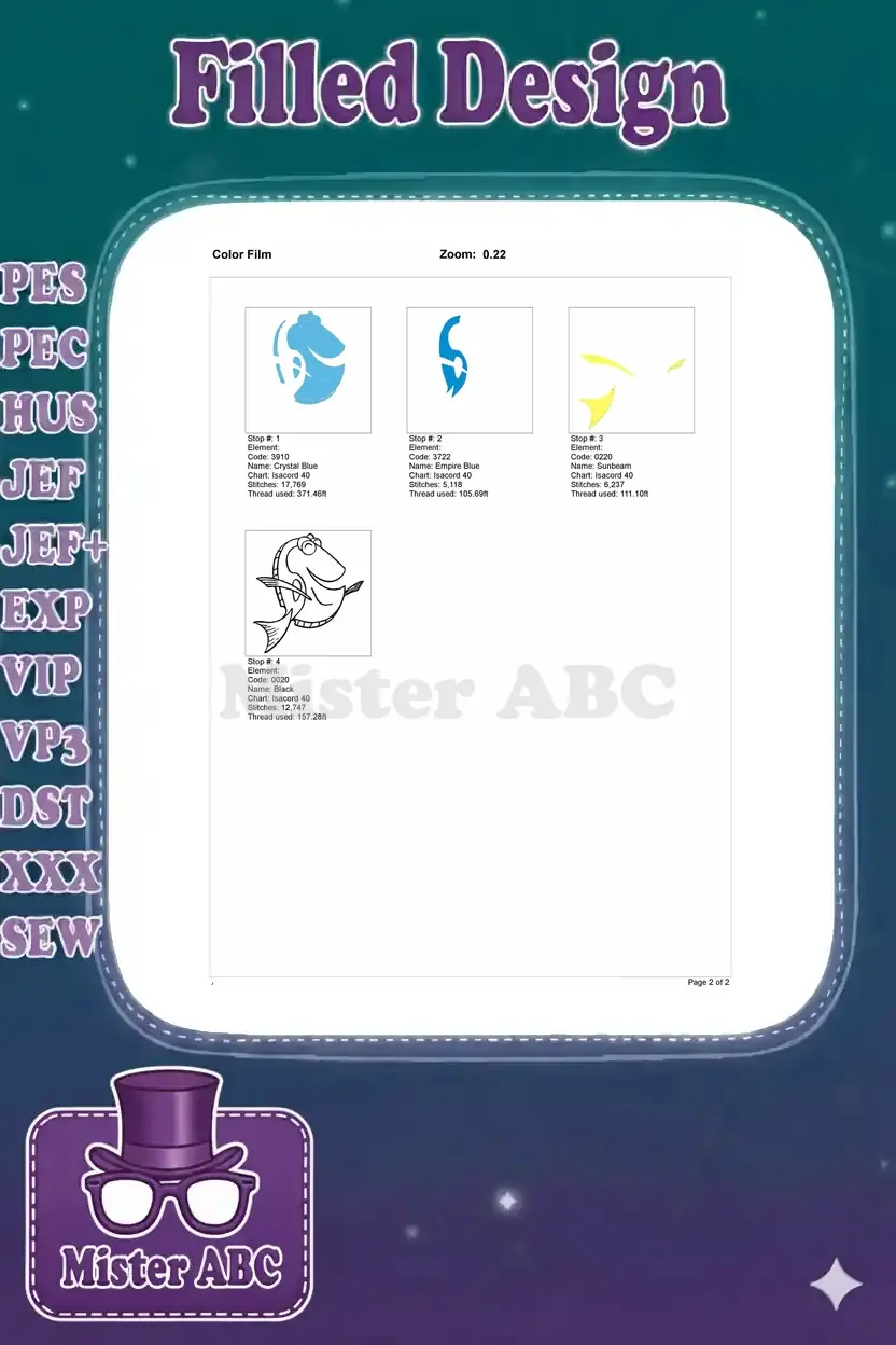 | Stitches | Colors | Thread Changes |