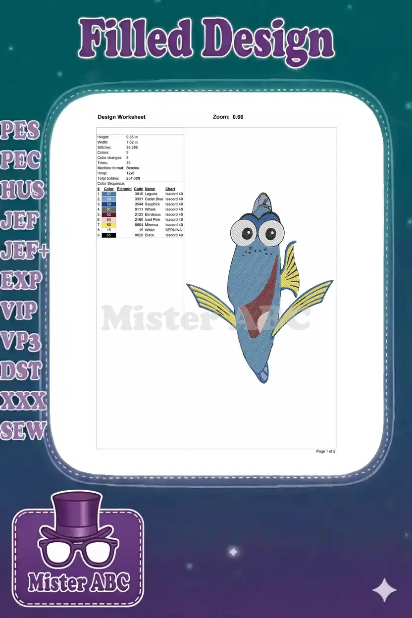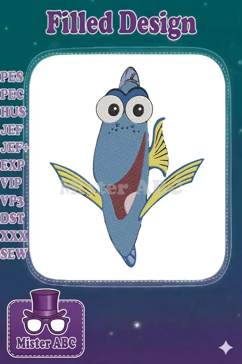 Happy Blue Tang Fish Cartoon Embroidery Designs for Kids