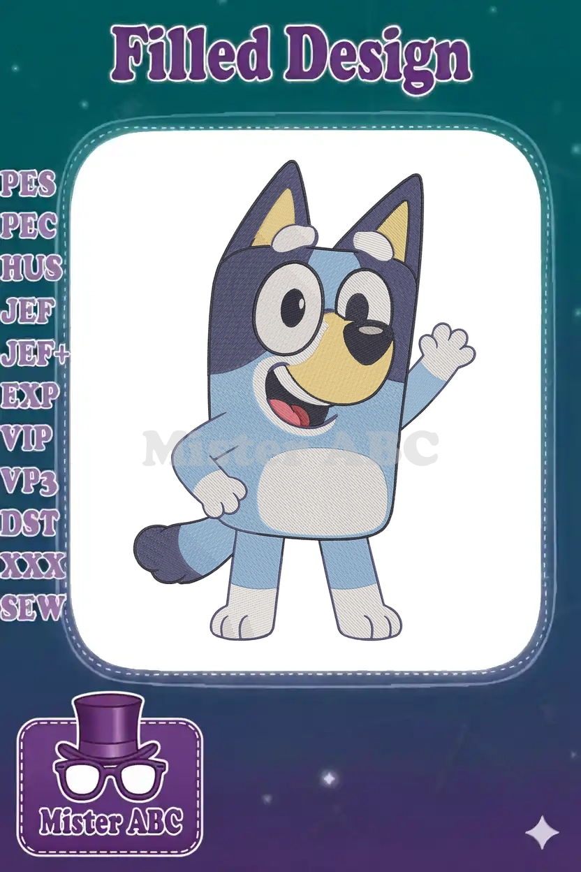 Happy Bluey Heeler waving hello cartoon embroidery designs