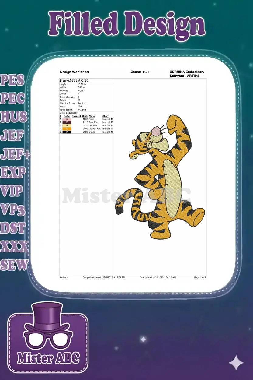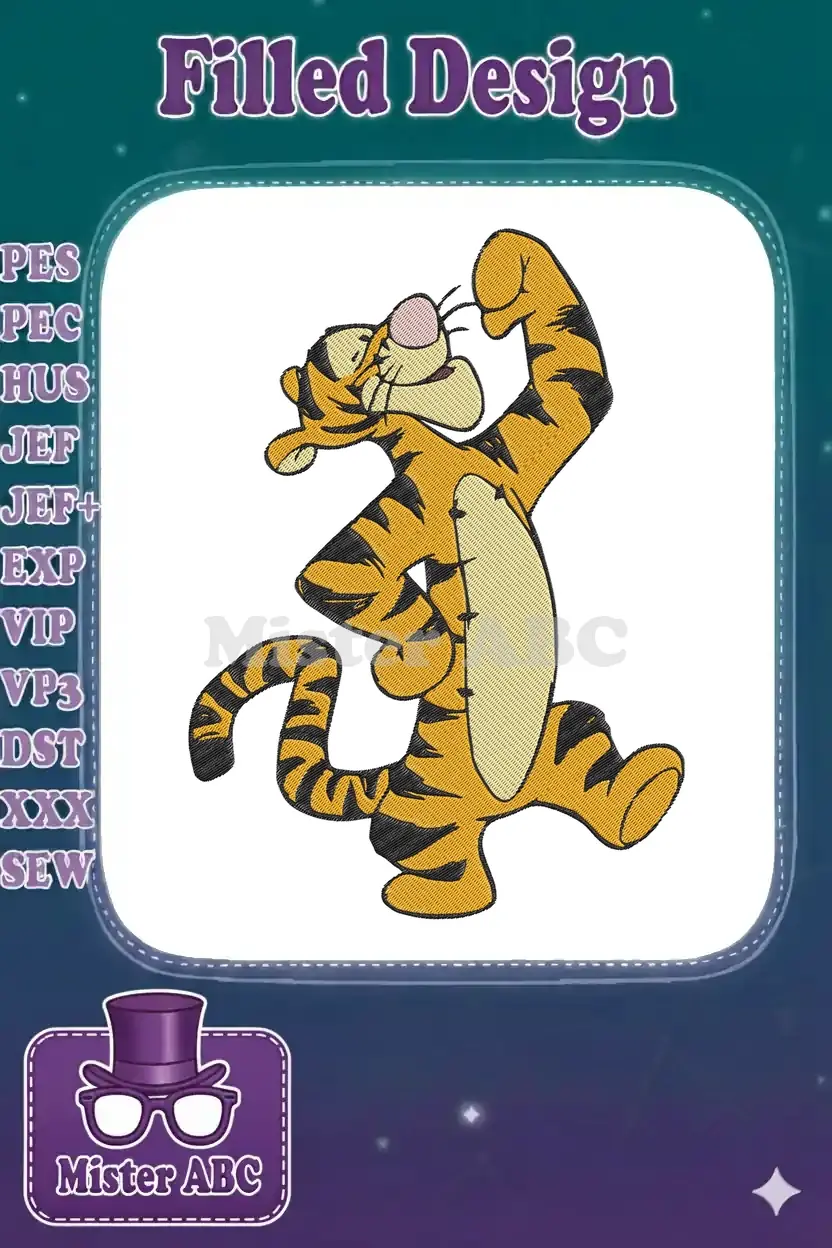 Lively Tigger embroidery design, perfect for adding a touch of bouncy fun to any project. High-quality stitch.