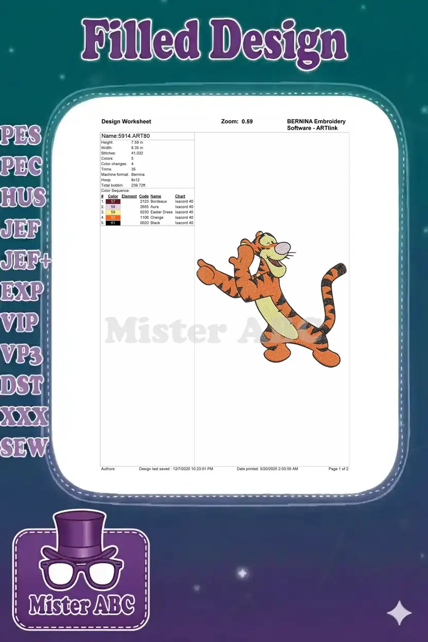 Happy Bouncing Tigger Winnie Pooh Embroidery Designs for Kids