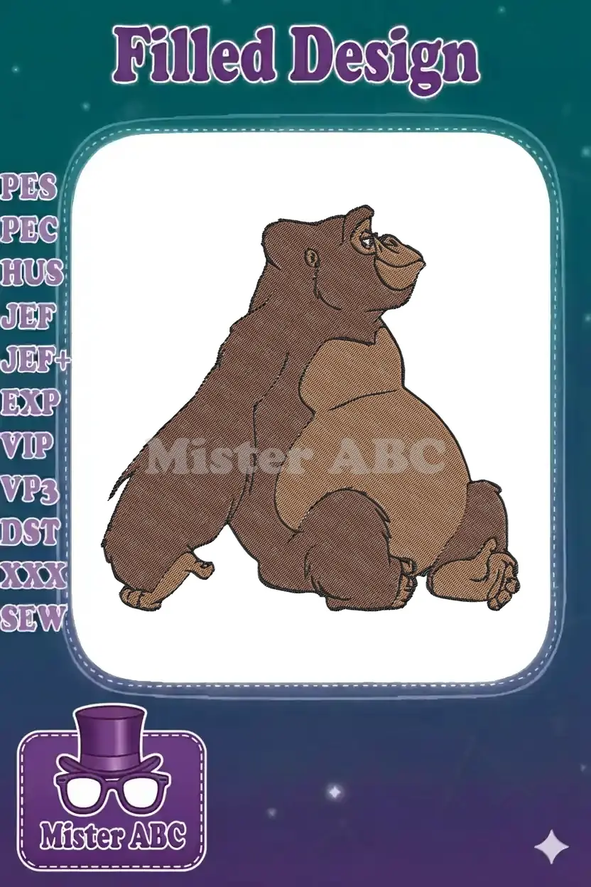 Happy brown gorilla sitting ape wildlife embroidery designs