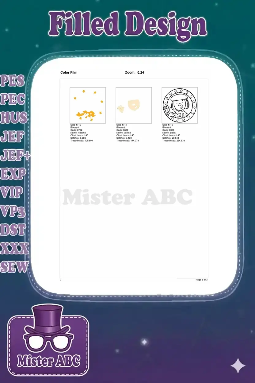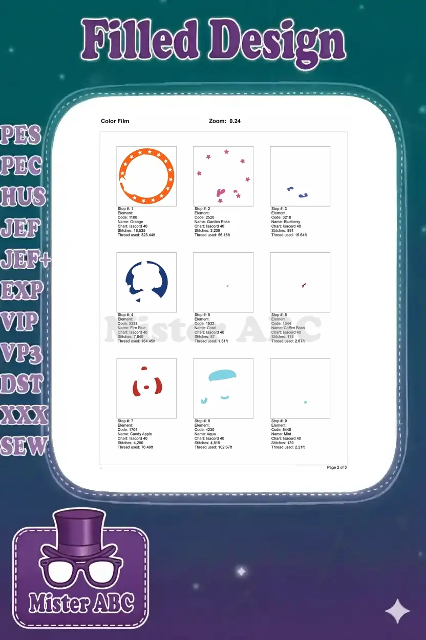| Stitches | Colors | Thread Changes |
