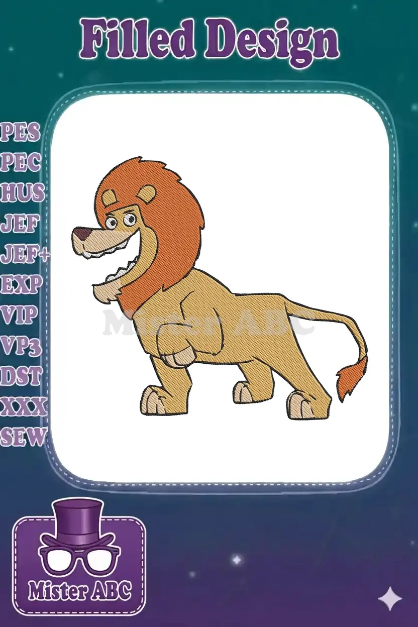 Happy cartoon lion animal embroidery designs for kids