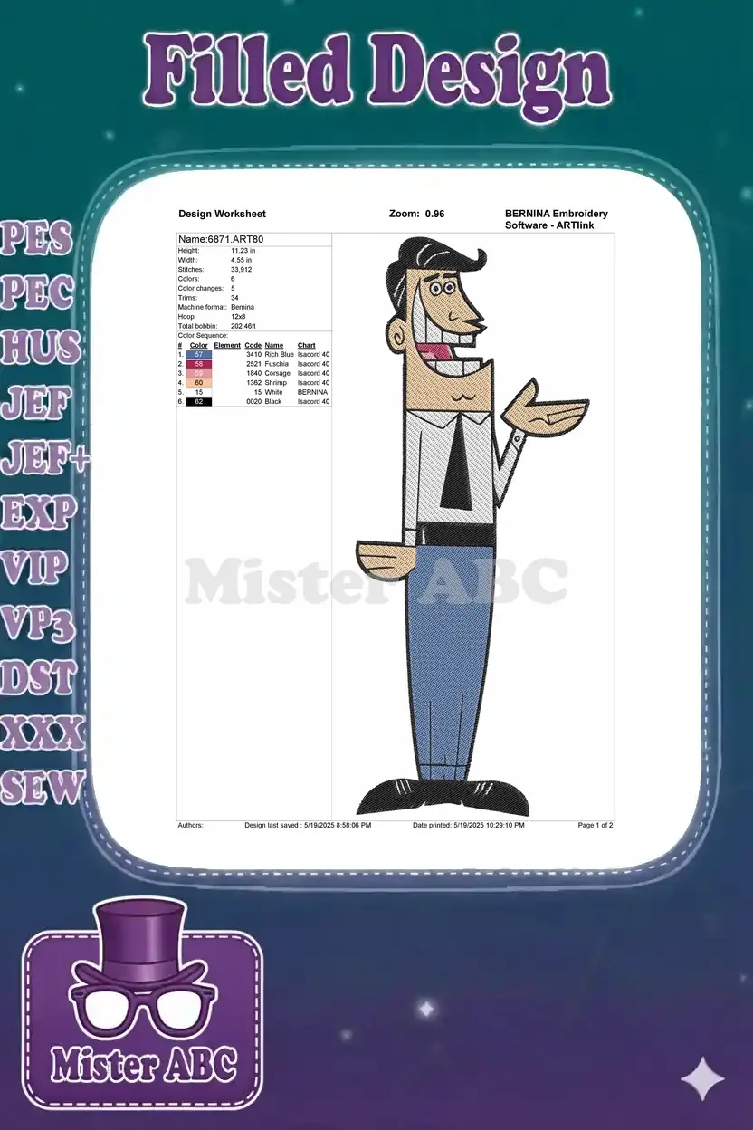 Happy Cartoon Man Character Wide Smile Gesturing Hand Embroidery Designs