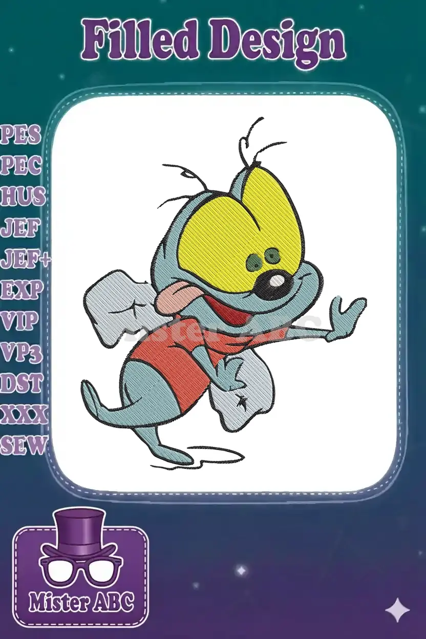 Happy cartoon mouse with big yellow eyes embroidery designs