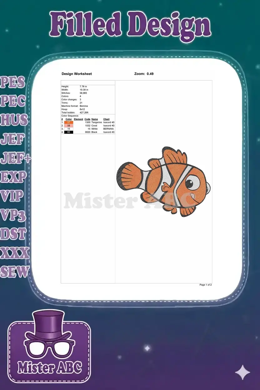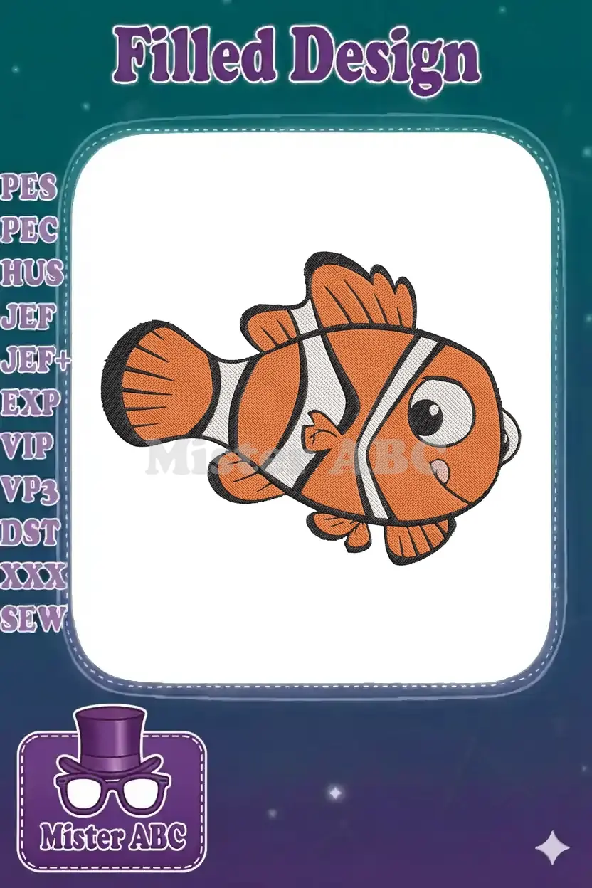 Happy Cartoon Orange Clownfish Embroidery Designs for Aquatic Projects