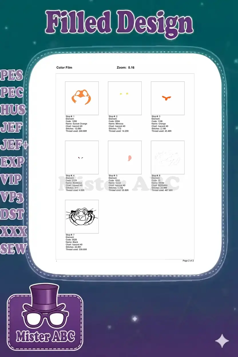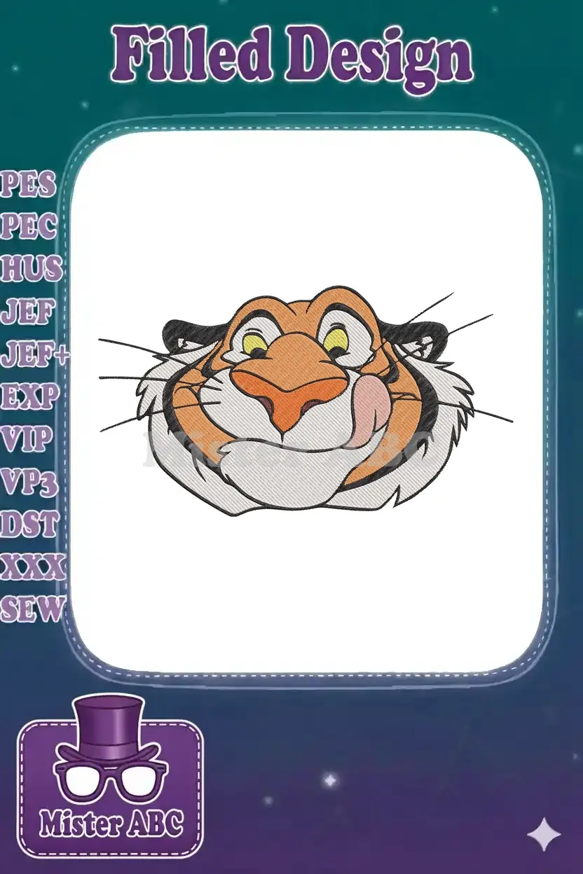 Happy Cartoon Tiger Face Embroidery Designs for Jungle Book Fans