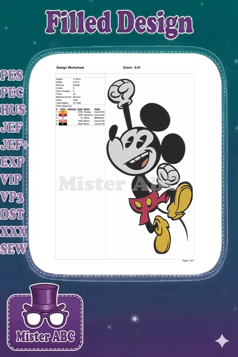 Happy Classic Mickey Mouse Dancing Pose Embroidery Designs