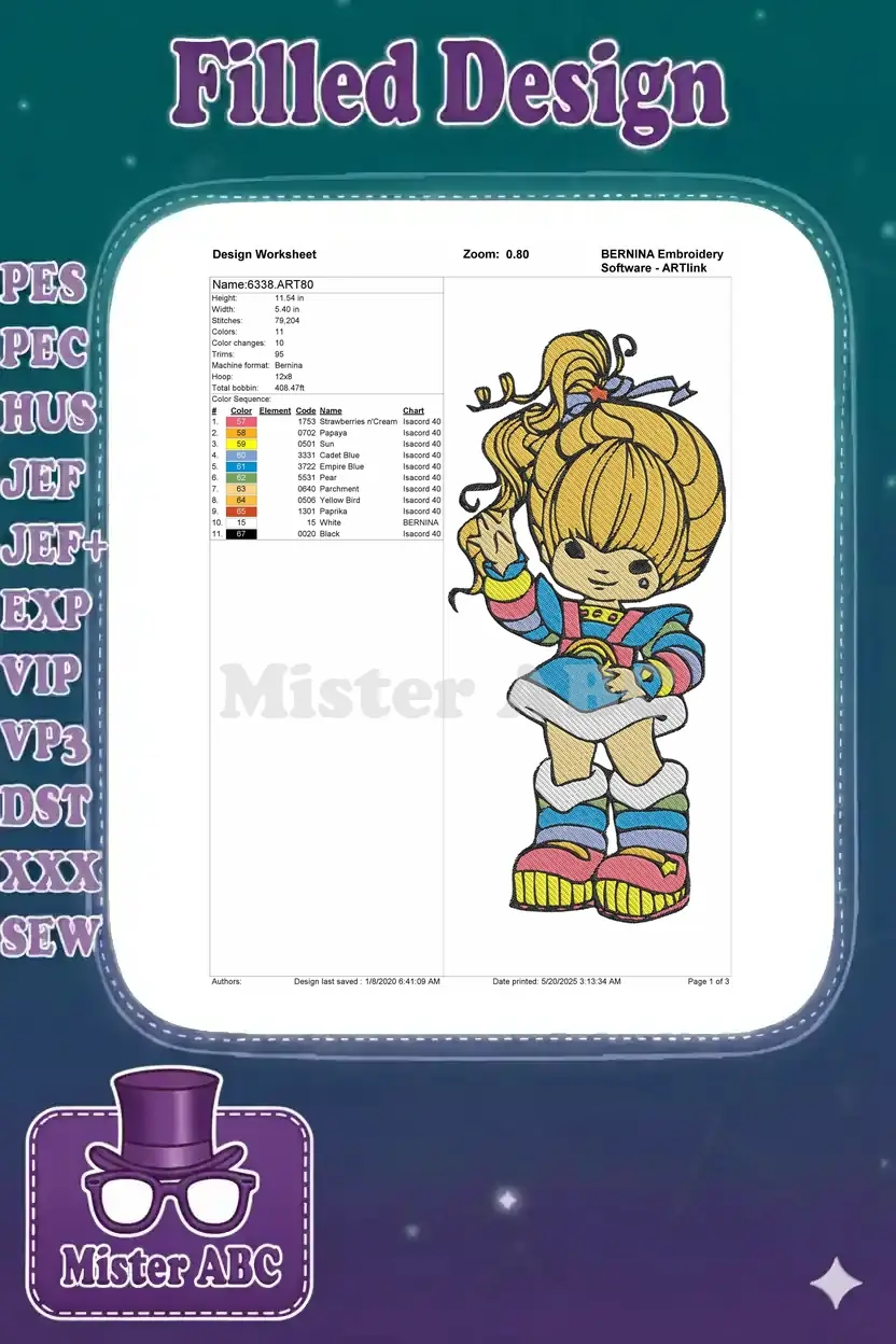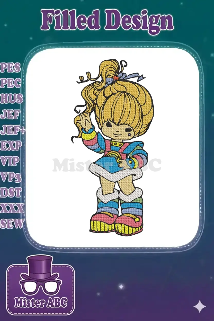 Happy Colorful Cartoon Girl Rainbow Dress Embroidery Designs