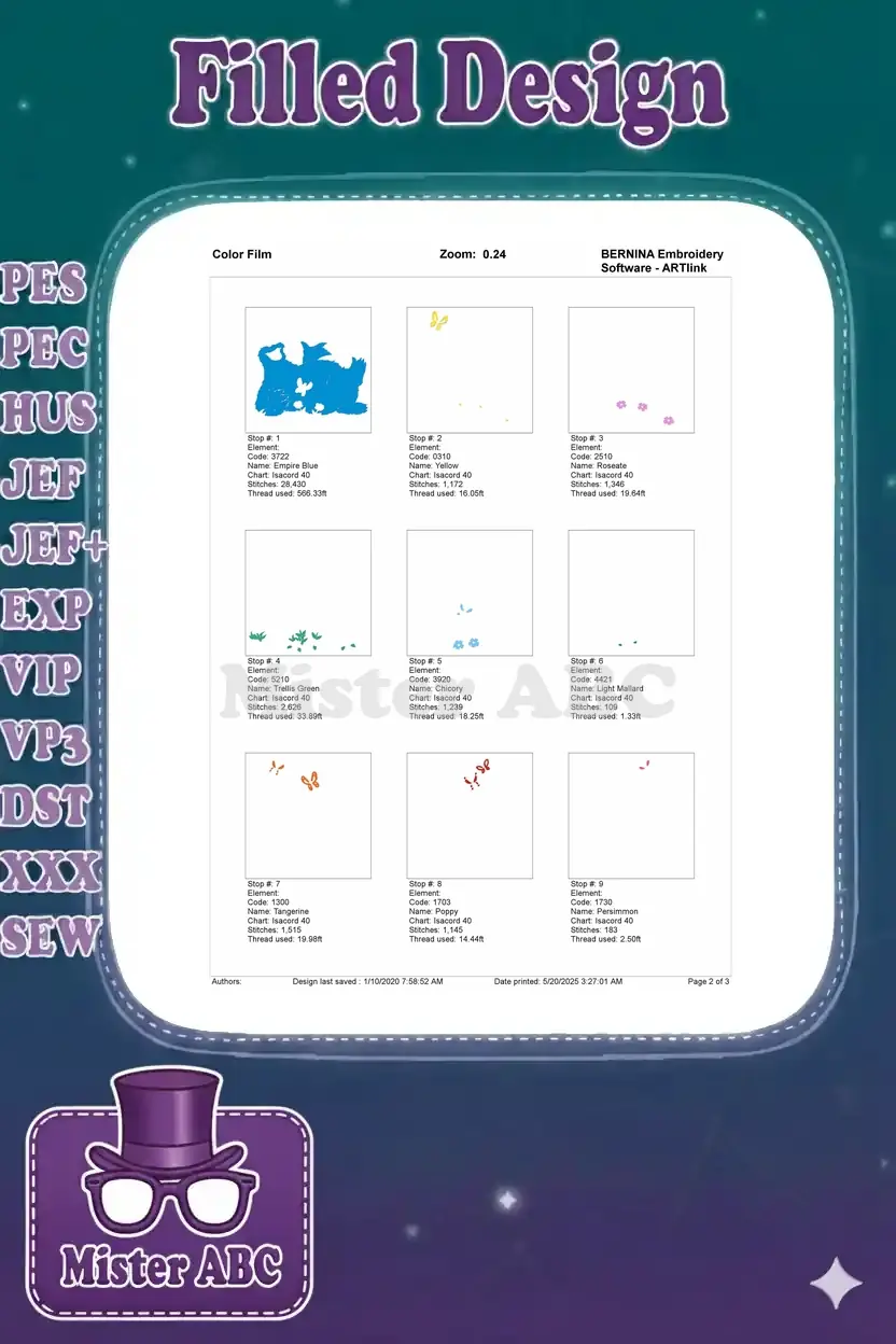 | Stitches | Colors | Thread Changes |