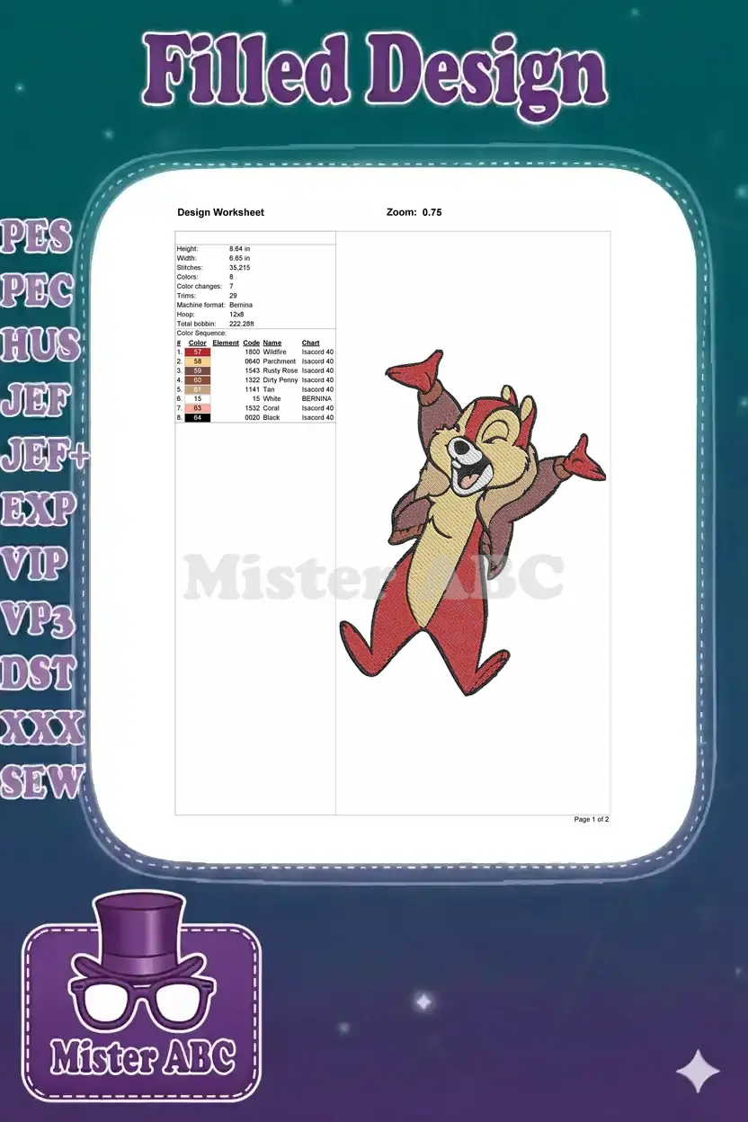 Happy Dale Chip ‘n Dale celebrating cartoon embroidery designs