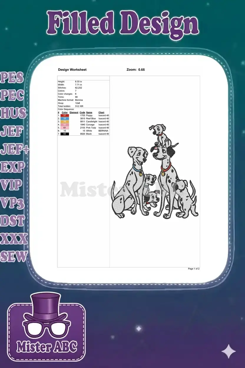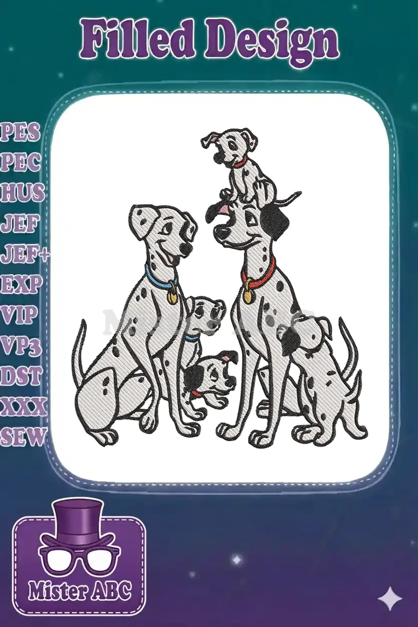Happy Dalmatian family embroidery designs with cute puppies