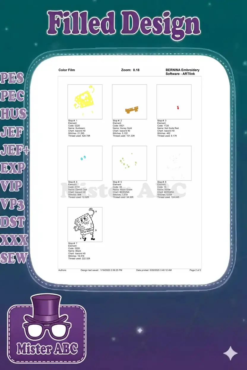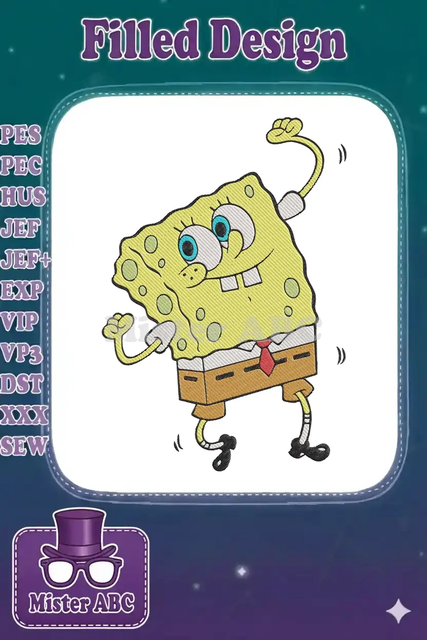 Bring joy to your projects with this lively SpongeBob SquarePants embroidery design, perfectly capturing his iconic dance moves. Ideal for fans!