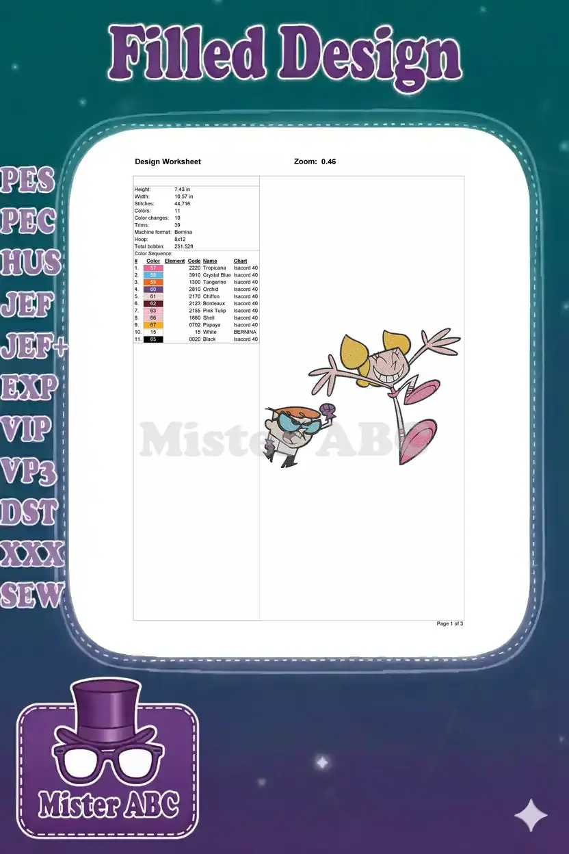 Happy Dee Dee and angry Dexter cartoon character embroidery designs
