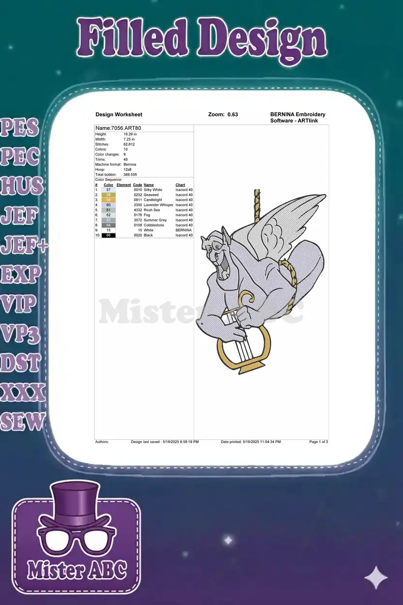 Happy Disney Hunchback Gargoyle Hugo with Lyre embroidery designs