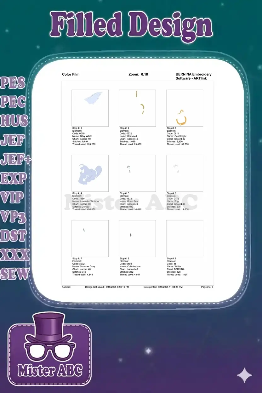 | Stitches | Colors | Thread Changes |