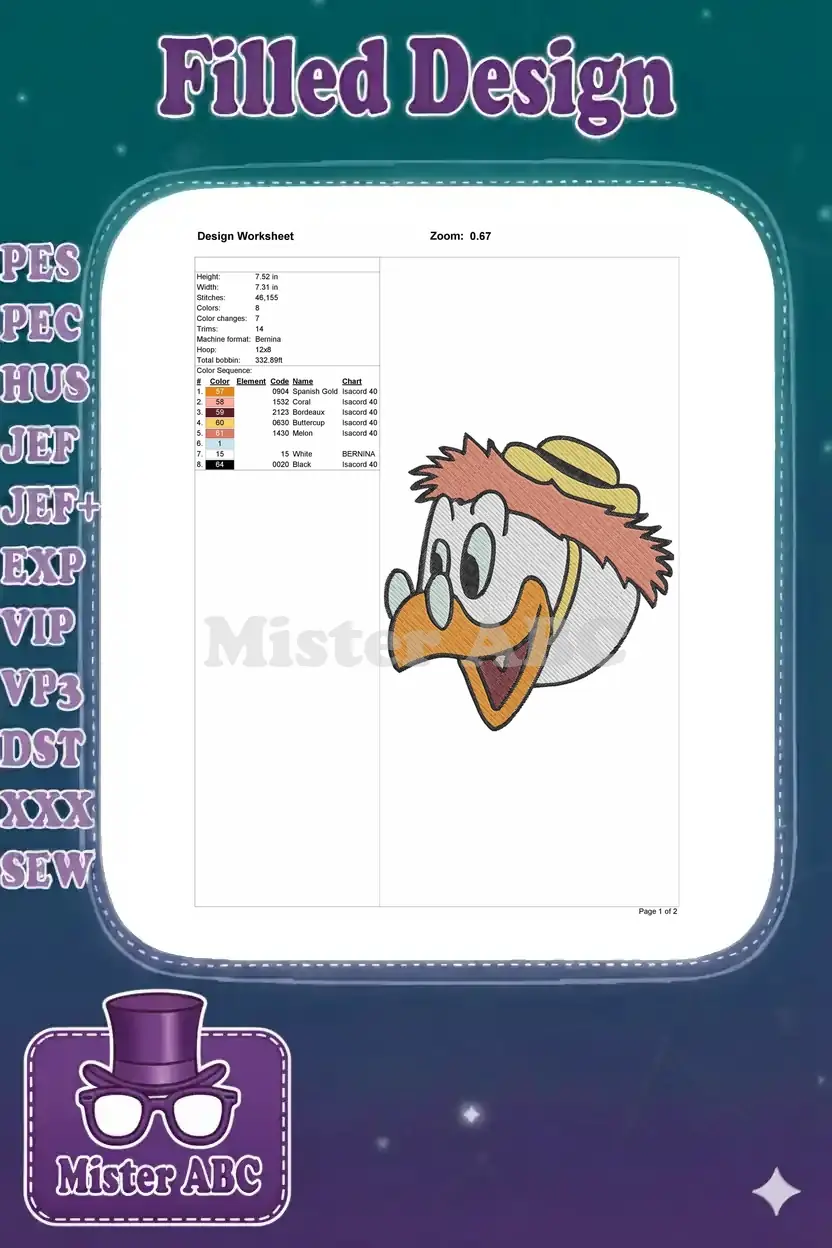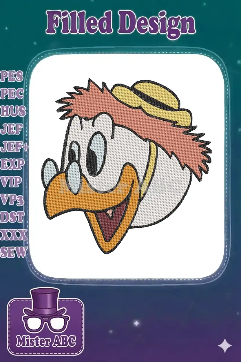 Happy Donald Duck cartoon character with glasses embroidery designs