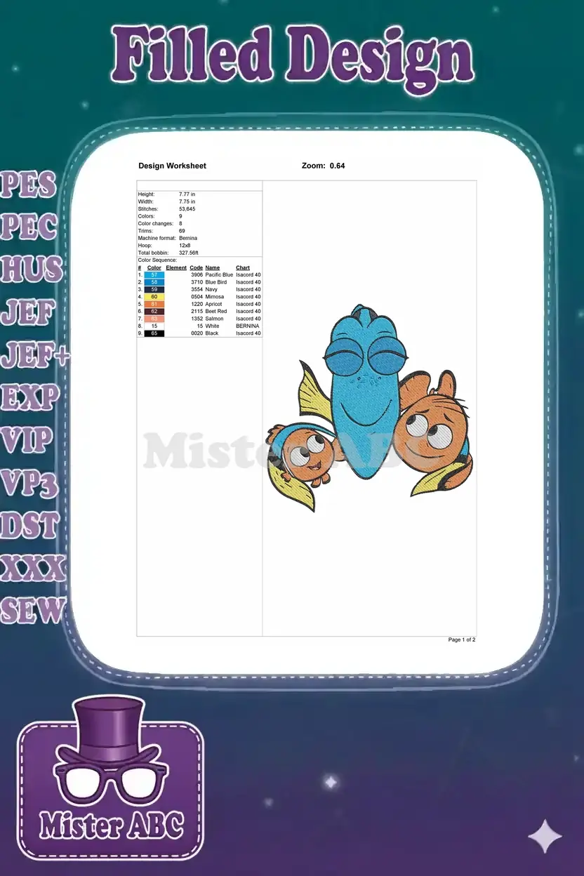 Happy Dory Nemo Squirt Cartoon Fish Embroidery Designs