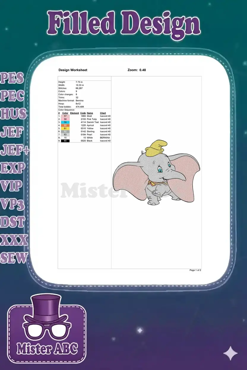 Bring the magic of Disney to life with this adorable Dumbo embroidery design, perfect for any fan’s project.